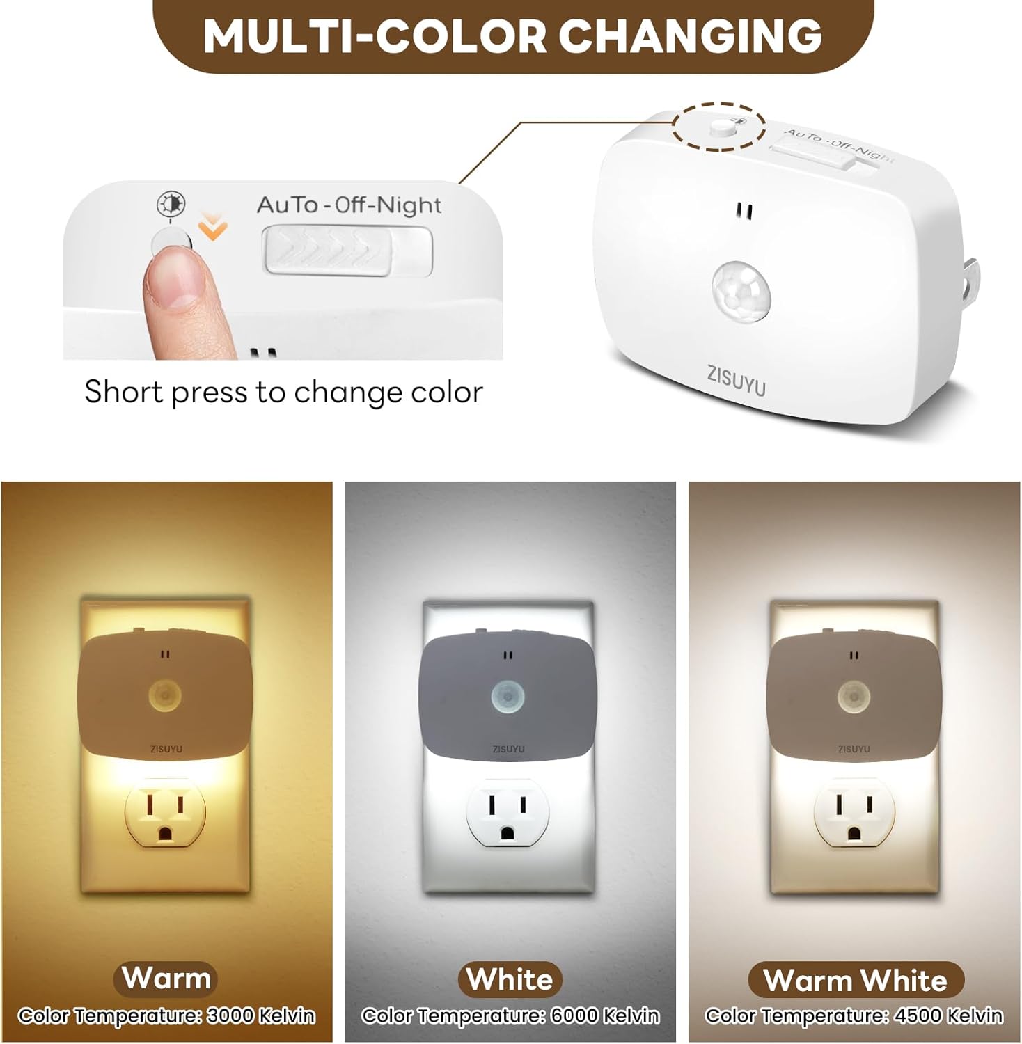 ZISUYU Plug-in LED Backlit Night Light with Motion Sensor & Dusk to Dawn Sensor, 10-60lm Dimmable Nightlight with Multi-Mode & Color-Changing, Ideal for Bedroom, Bathroom, Stairs, Hallway (6 Pack)