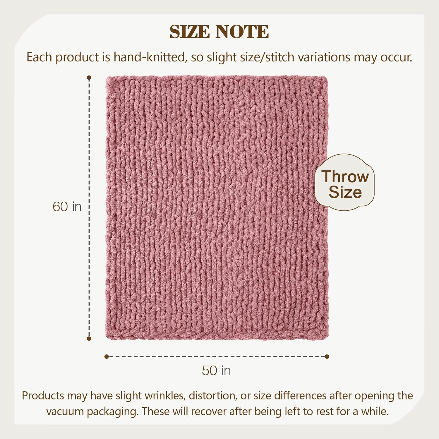 Carriediosa Chunky Knit Throw Blanket 50" X 60", 100% Hand Made Large Chenille Loop Yarn Soft Fluffy Throws for Couch Sofa Bed, Big Crochet Cozy Heavy Thick Cable Woven Blanket, Mauve