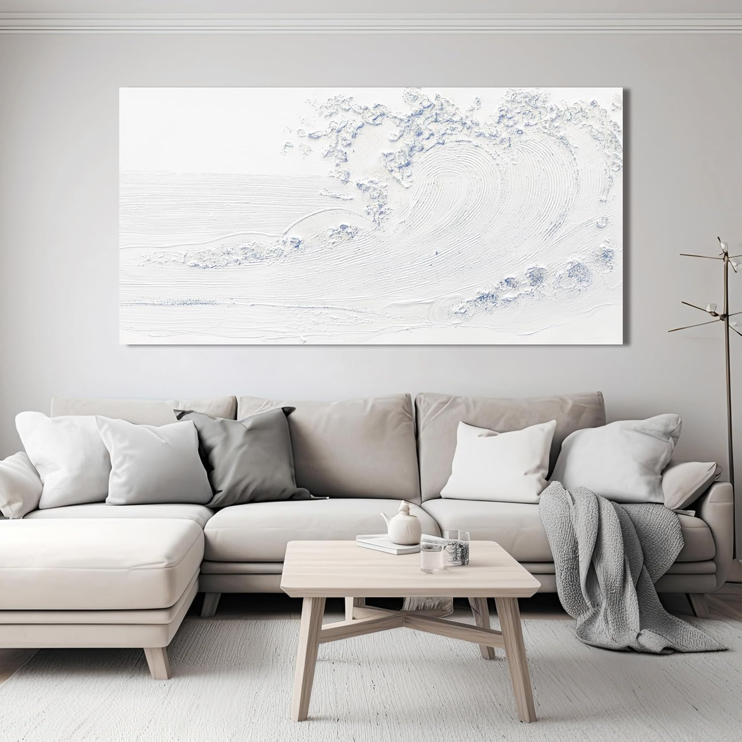 Canvas Wall Art Decor Large Wall Art Pictures for Living Room Wave Artwork for Walls White Blue Wave Wall Art Prints Landscape Coastal Wall Art Decor Art Work for Home Office Room Wall Decor 24"x48"