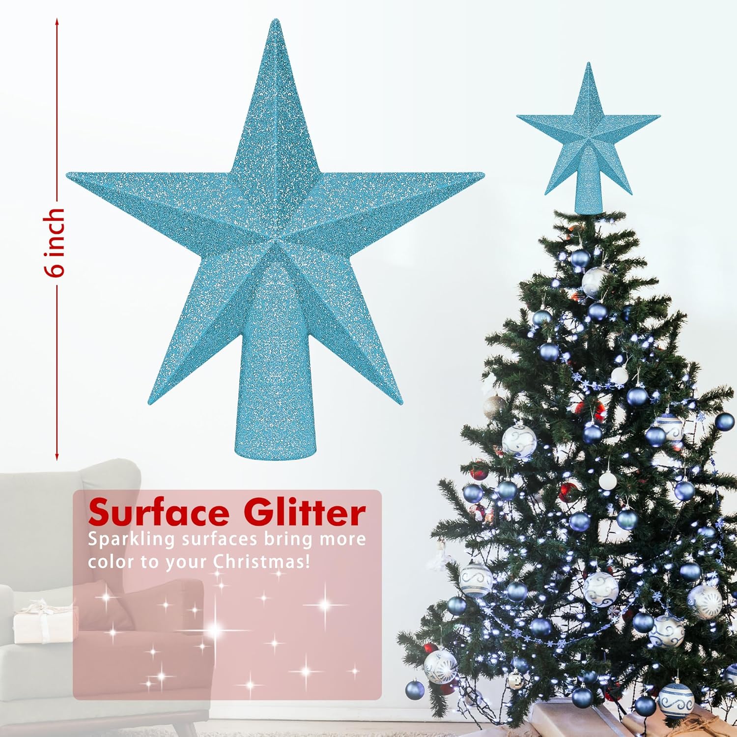 Christmas Tree Topper, Blue 6" 3D Star Tree Topper Decorations, Christmas Tree Topper Bethlehem Star Ornament, Glitter Waterproof Shatterproof Xmas Tree Decor for Holiday Xmas Home Indoor Outdoor