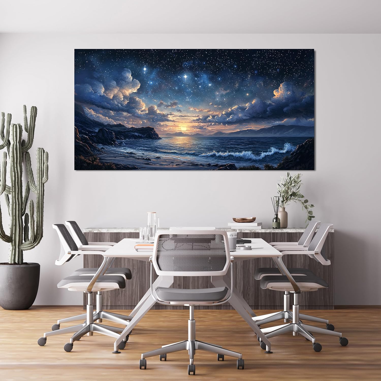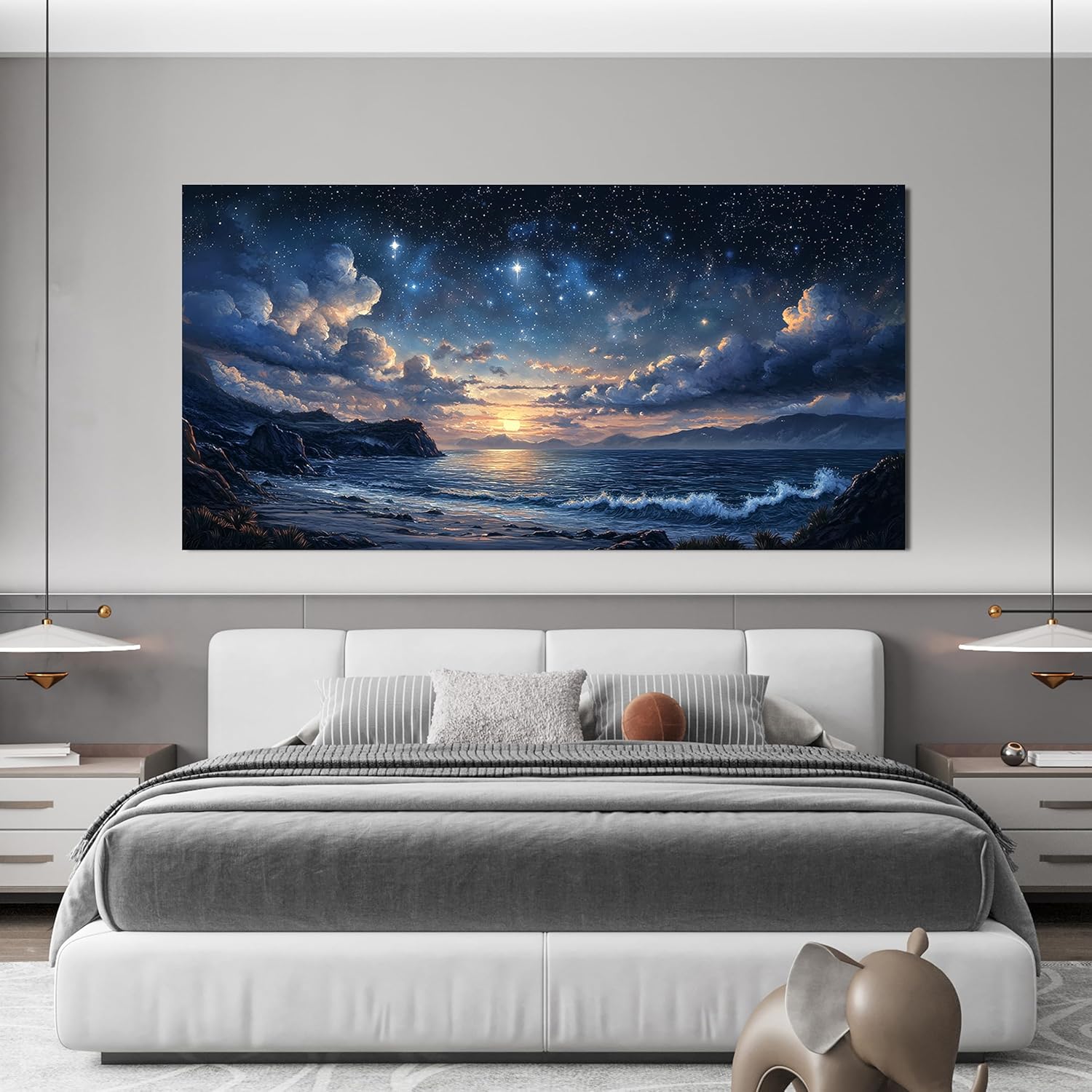Canvas Wall Art Decor Large Wall Art Pictures for Living Room Landscape Coastal Wall Art Canvas Art Wall Decor Star Night Blue Artwork for Walls Prints Art Work for Room Office Home Wall Decor 29"x58"