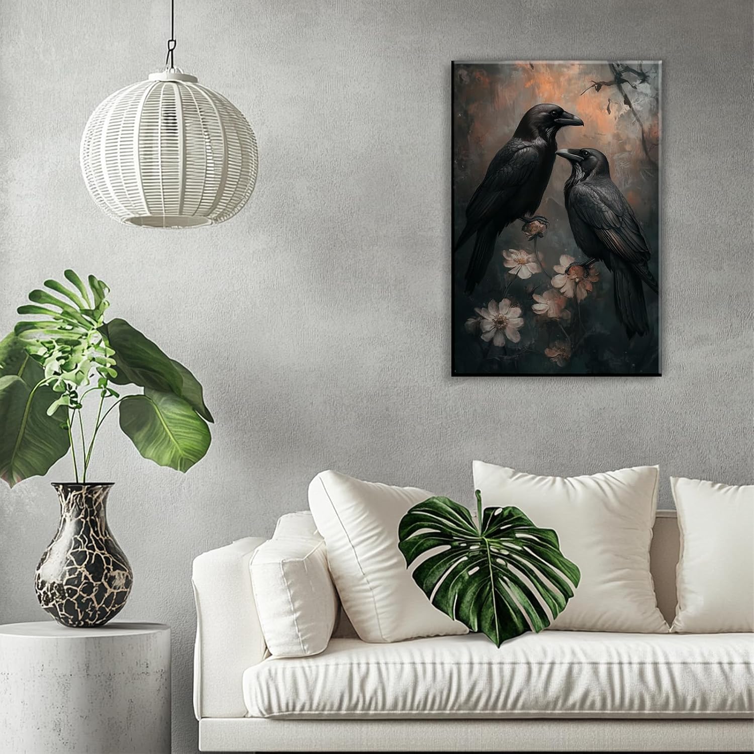 OAAPITI Birds Canvas Wall Art Black Couple Crow Picture Print Vintage Gothic Raven Artwork for Living Room Halloween Home Wall Decor(Artwork-7,20"x30")
