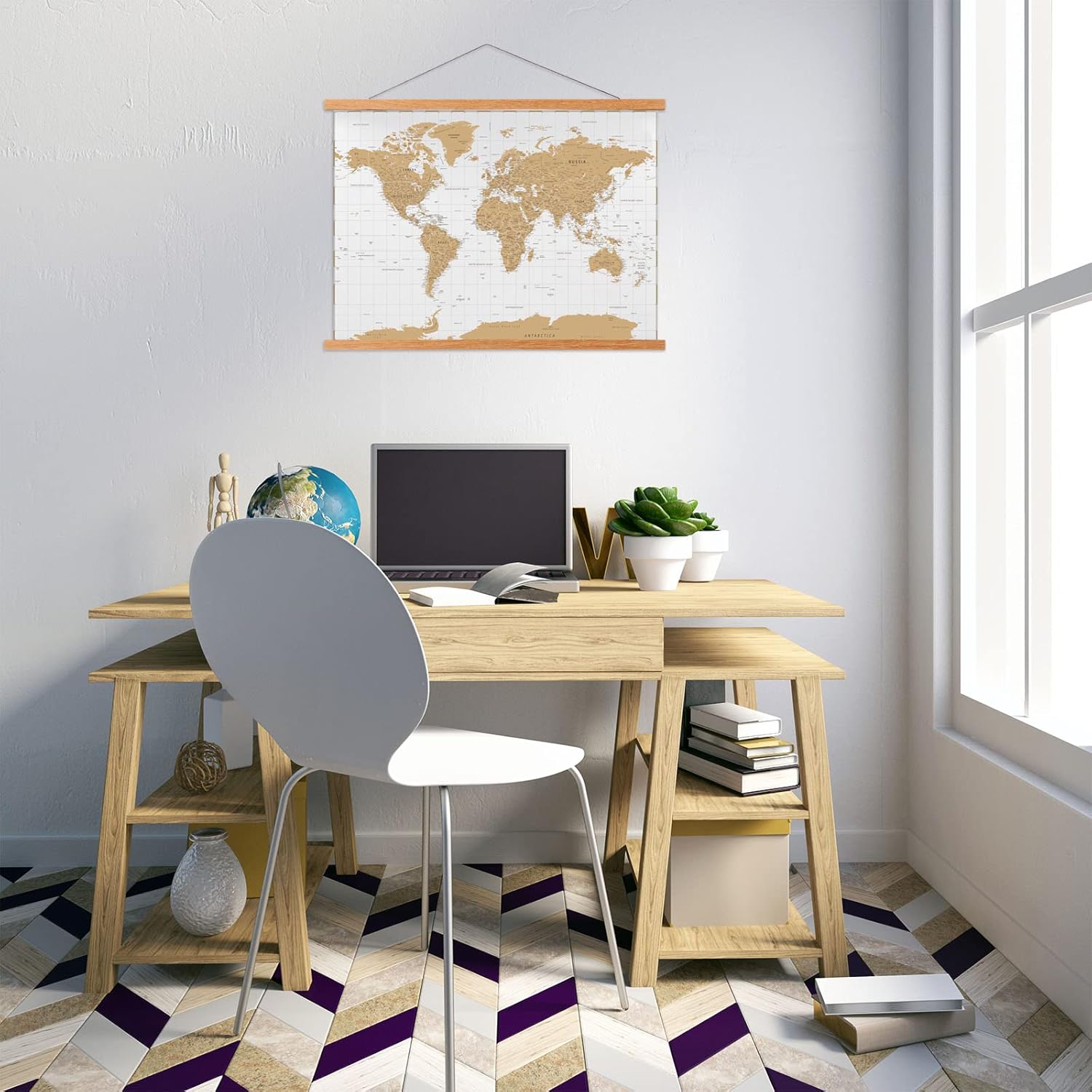 FALAMON Magnetic Poster Hanger Frame, 56x24 56x32 56x40 Teak Wood Magnet Poster Frame for Posters, Prints, Photos, Pictures, Maps, Scrolls, and Canvas Artwork