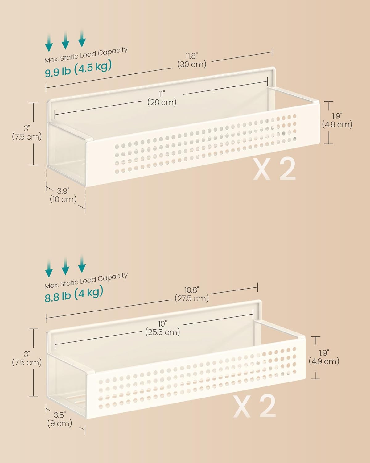 SONGMICS Magnetic Spice Rack for Refrigerator, Set of 4, 2 Large and 2 Small Kichen Magnetic Shelves for Microwave, Washing Machine, Spice Organizers, No Drilling Needed, Cream White UKCS061W01