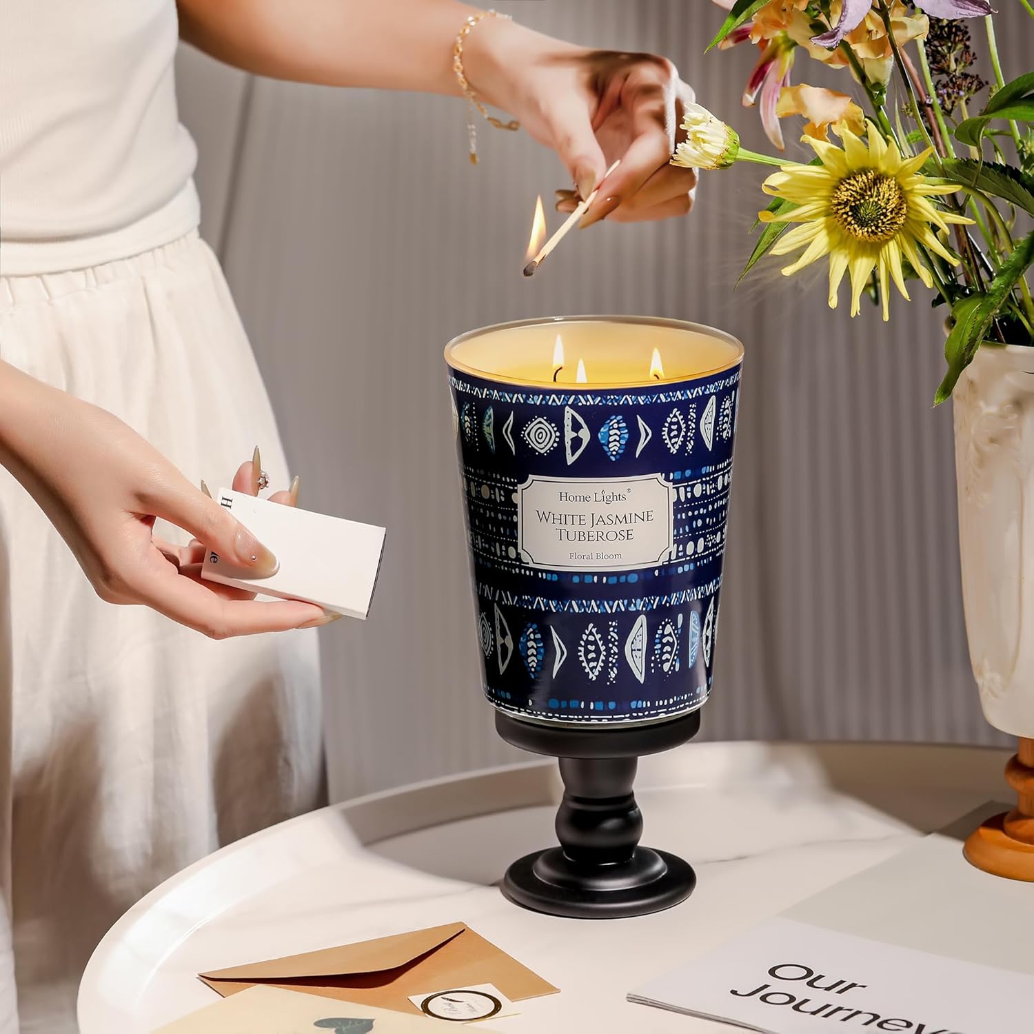 HomeLights Scented Candles for Women & Men, 34oz Candle Jars Aromatherapy 3-Wick Candle, Ideal for Bohemian Natural Textures Home Decor and Gifts, White Jasmine Tuberose