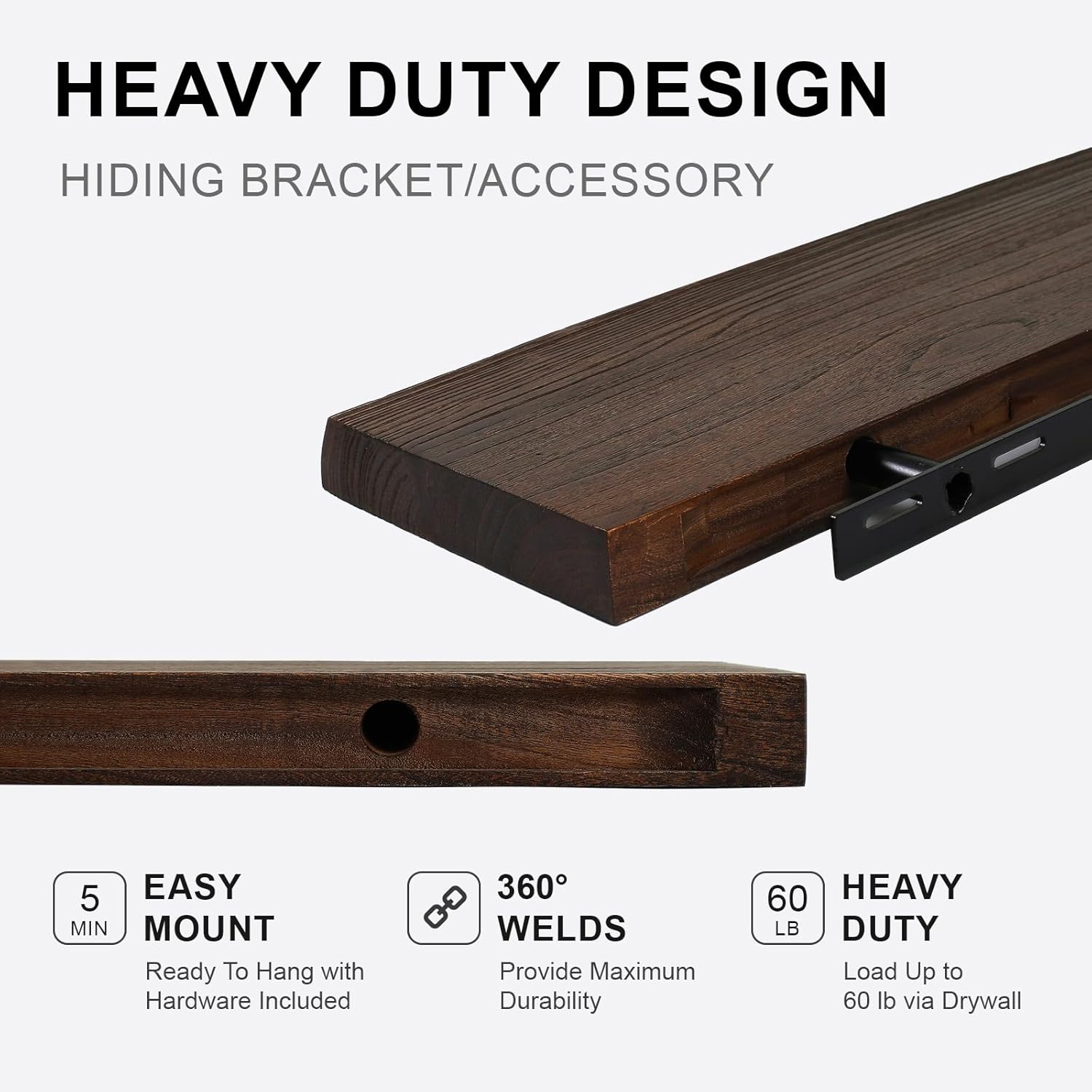 Wood Floating Shelves Set of 2, Aged Elm Wood Picture Wall Shelf, Floating Shelves for Wall for Bedroom Kitchen Bathroom Living Room (Walnut, 36 inch)