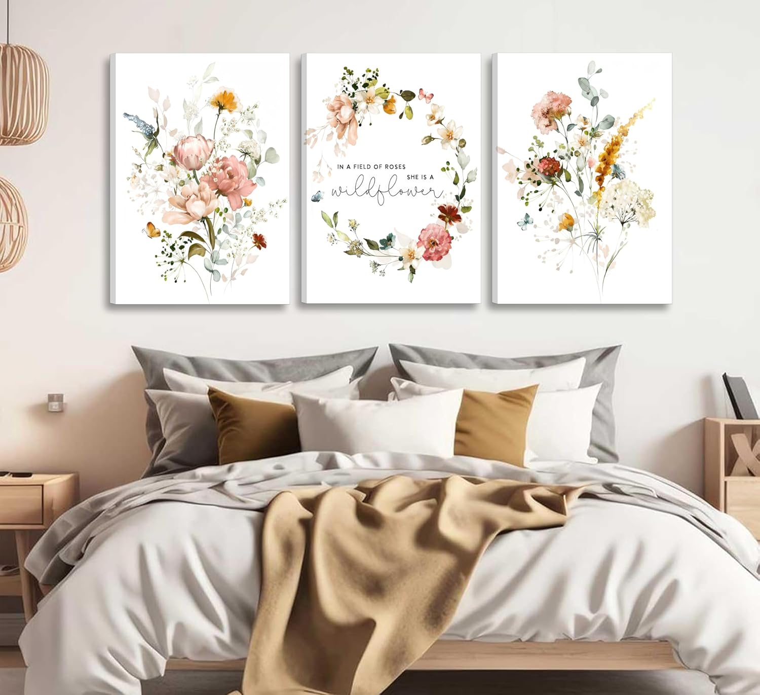 - 【Perfect for Various Spaces 】:This set of three wildflower art prints is versatile, ideal for enhancing the aesthetic of living rooms, bedrooms, and bathrooms. Whether you want to create a calming ambiance in your bathroom or add a burst of color to your bedroom, these watercolor flower paintings are a perfect fit.