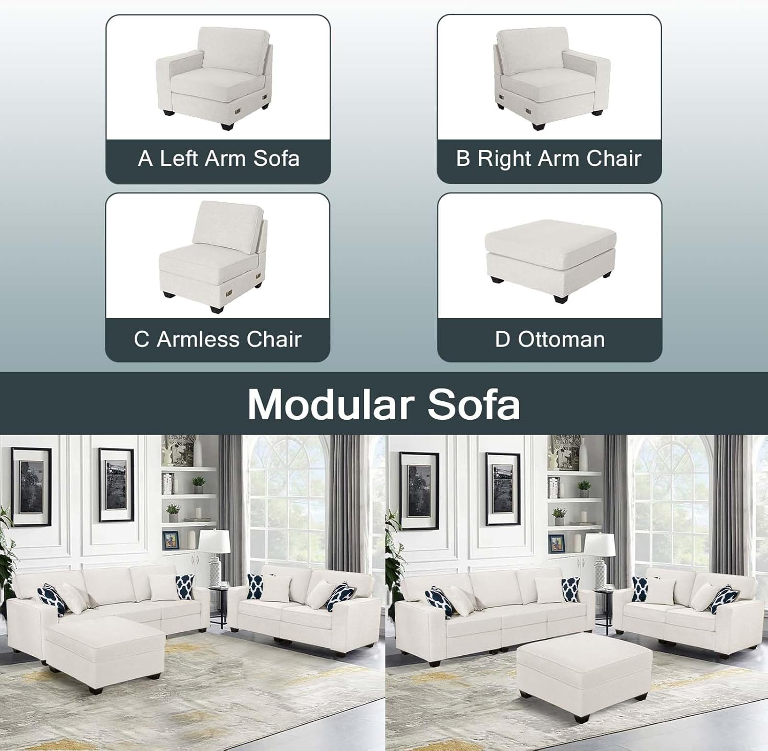L Lengend Vansen Modular Sectional Sofa U Shaped Couch with Ottoman Modern Reversible Corner Sectional Couch for Living Room (Cream, 2+3 with Ottoman)