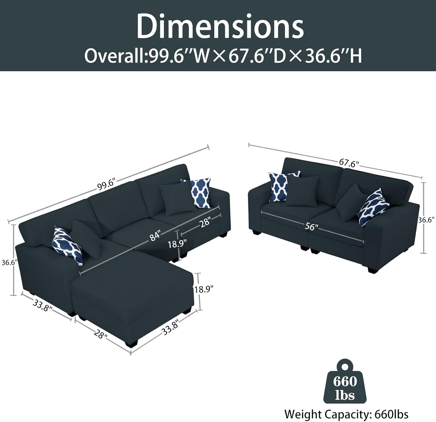 - 【Ergonomic Design】The backrest of the couches for living room perfectly fits the human body curve, the armrests are wide and at the right height, and the living room sofa as a whole is ergonomically designed to give you comfortable support. The modular sectional sofa is paired with multiple multi-functional small pillows, allowing you to relax anytime, anywhere. The oversized couch has a weight capacity of up to 660 pounds to give you stable support.