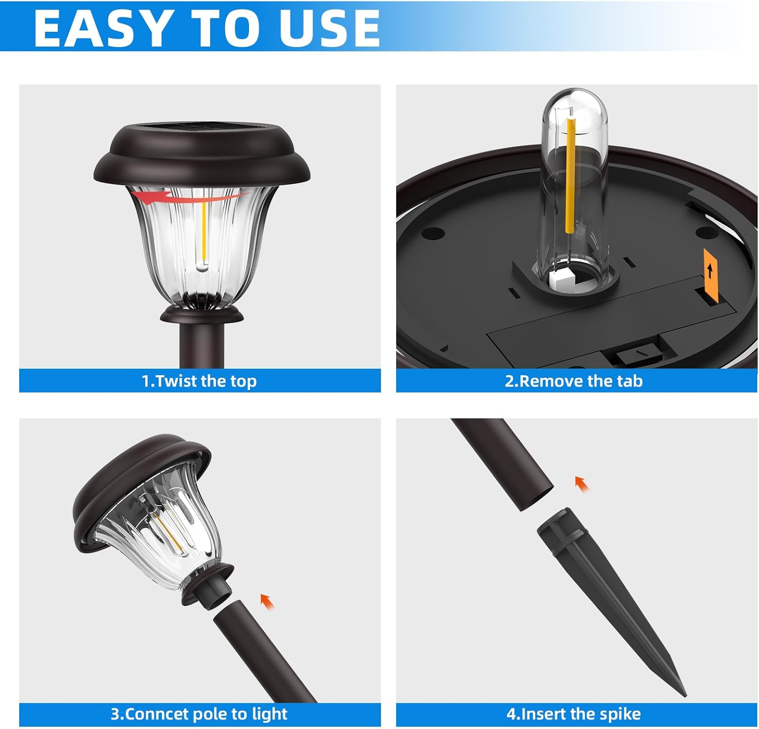 - Easy Installation - No wiring or electricity is required, making installation a breeze. Simply stake the pathway lights into the ground in a sunny spot, without the hassle of traditional outdoor lighting systems, provide illumination for your garden or yard .