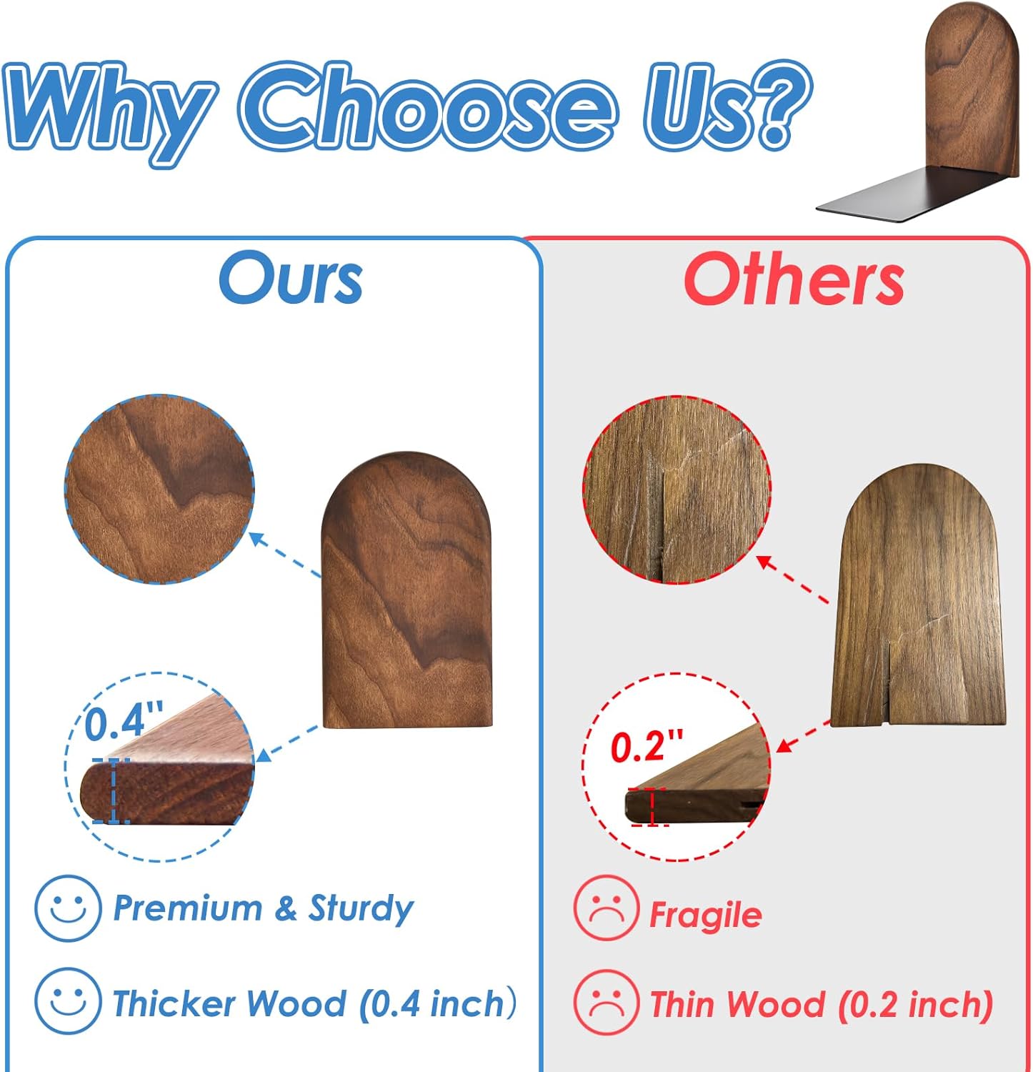 - Natural Black Walnut Craftsmanship: Crafted from black walnut with unique natural grain patterns—no veneers or synthetic dyes, each pair is unique. Thicker wooden bookends are more durable and resistant to drops, adding the breath of nature for your desk.