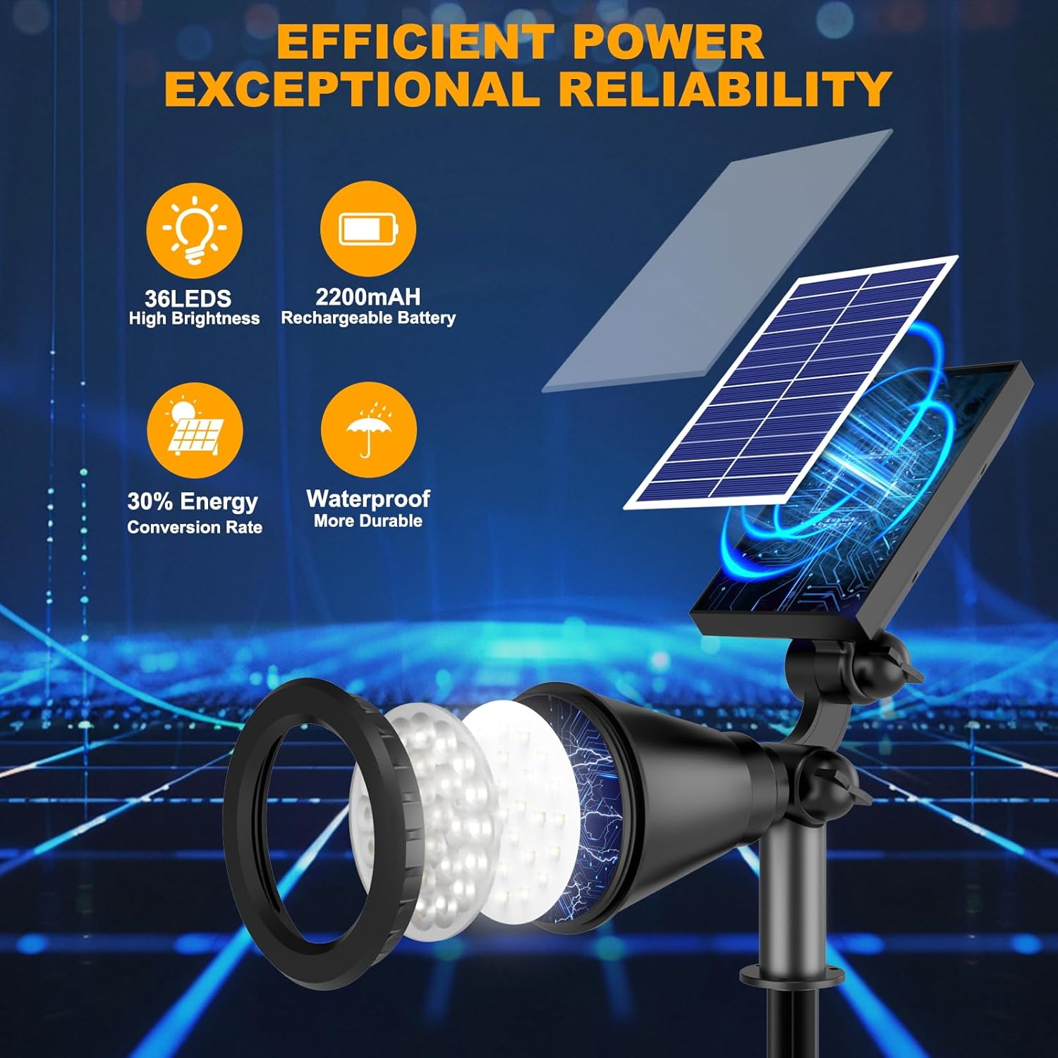 - 【Bright Solar-Powered Lighting for Your Outdoors】These powerful solar powered outdoor lights feature 36 LEDs that provide brilliant, eco-friendly illumination. The lights automatically turn on at dusk and off at dawn, offering 6–12 hours of vibrant lighting. Let your yard shine with stunning outdoor lights—no switches needed