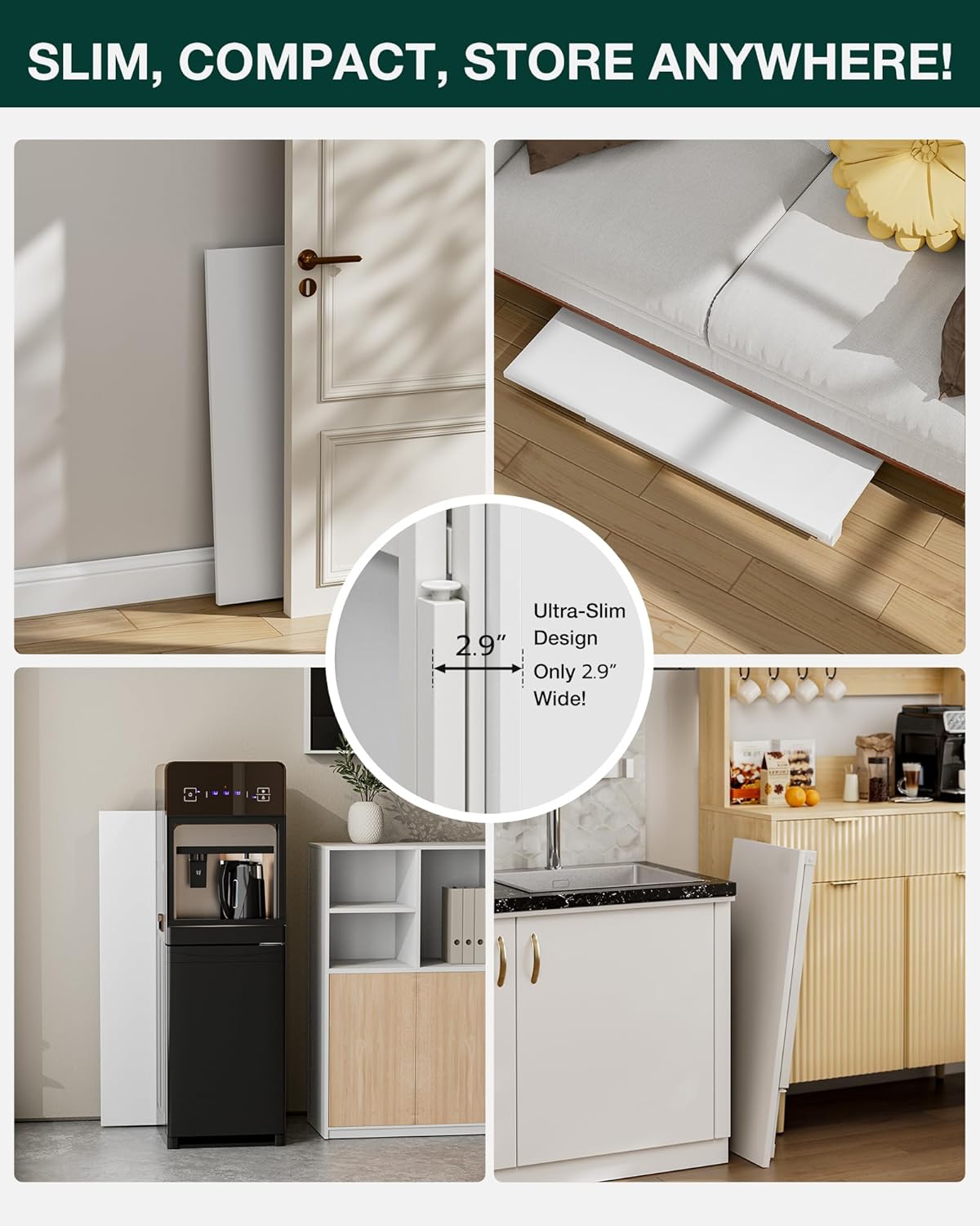 - 👍𝗙𝗢𝗟𝗗𝗦 𝗙𝗟𝗔𝗧 𝗪𝗜𝗧𝗛 𝗦𝗣𝗔𝗖𝗘-𝗦𝗔𝗩𝗜𝗡𝗚 𝗦𝗧𝗢𝗥𝗔𝗚𝗘 — With a folded thickness of only 2.9 inches, this desk fits easily under beds or behind doors. Lightweight and compact, it’s perfect for small-space living or temporary setups like trade shows and pop-up workstations