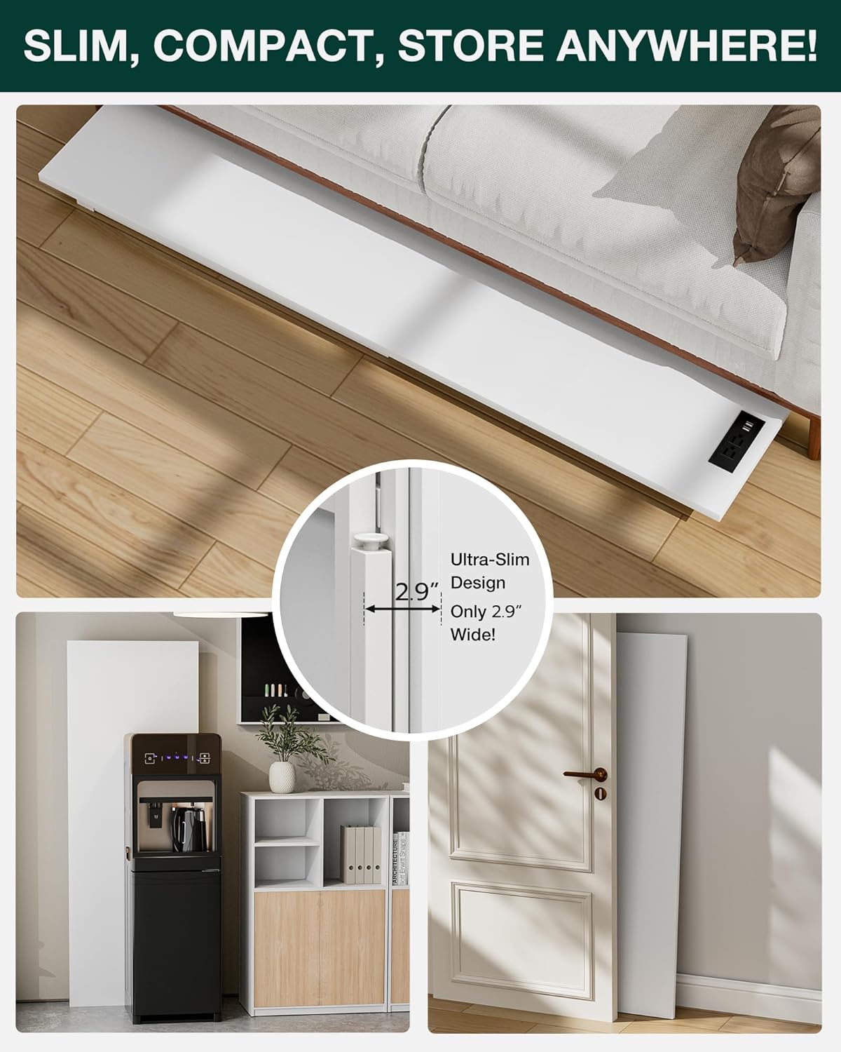 - 👍𝗨𝗟𝗧𝗥𝗔-𝗦𝗟𝗜𝗠, 𝗦𝗣𝗔𝗖𝗘-𝗦𝗔𝗩𝗜𝗡𝗚 𝗦𝗧𝗢𝗥𝗔𝗚𝗘 — When folded, the desk is just 2.9" thick—easily stored behind doors, under beds, or in closets. Lightweight and portable, it’s perfect for compact living areas or anyone needing a foldable table that’s easy to move