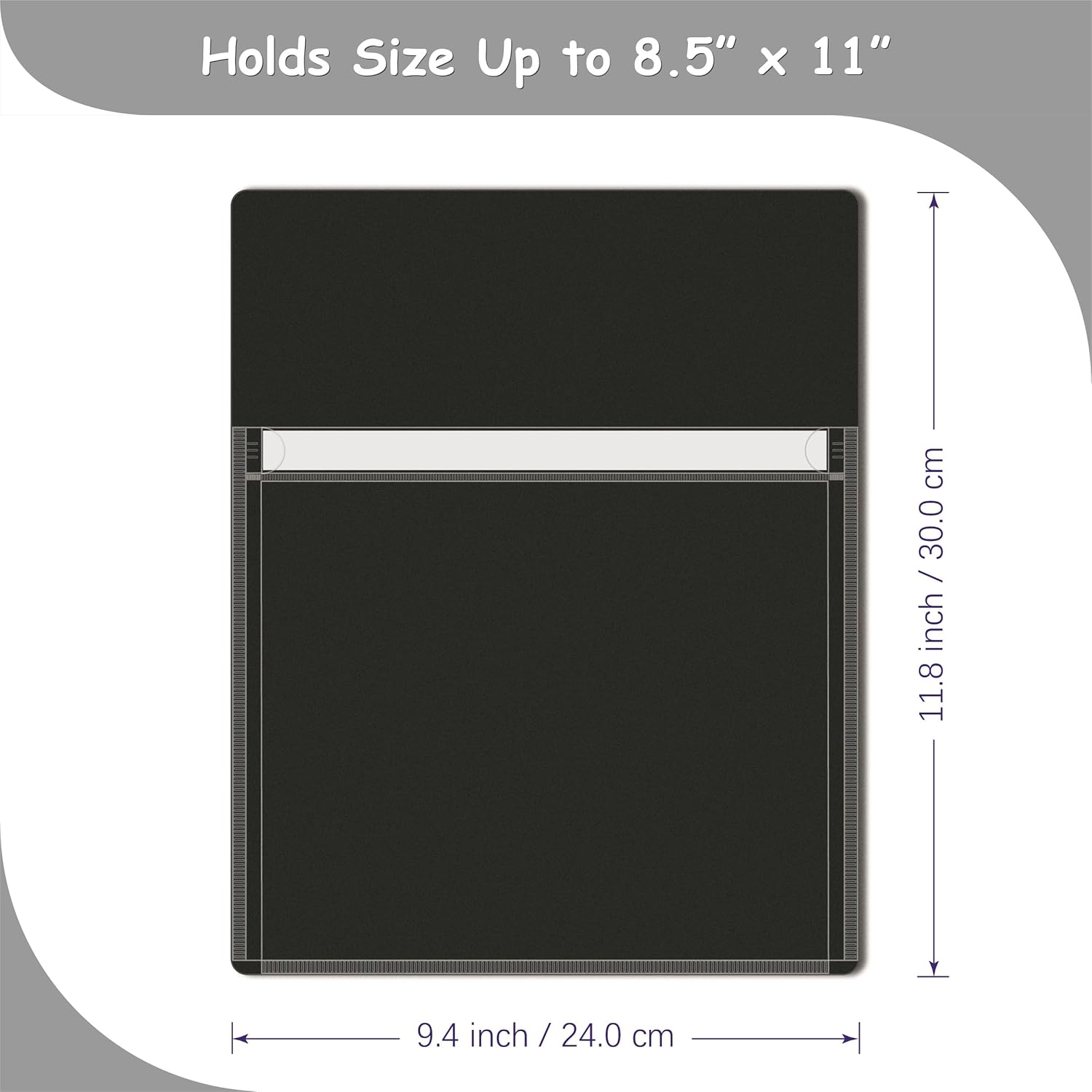 Magnetic Pocket 4 Pack – Self-Adhesive Magnetic Storage Pouch for Documents, Notes & Tools, Strong Magnet Backing for Fridge, Whiteboards, and Metal Surfaces (Black 4Pcs)