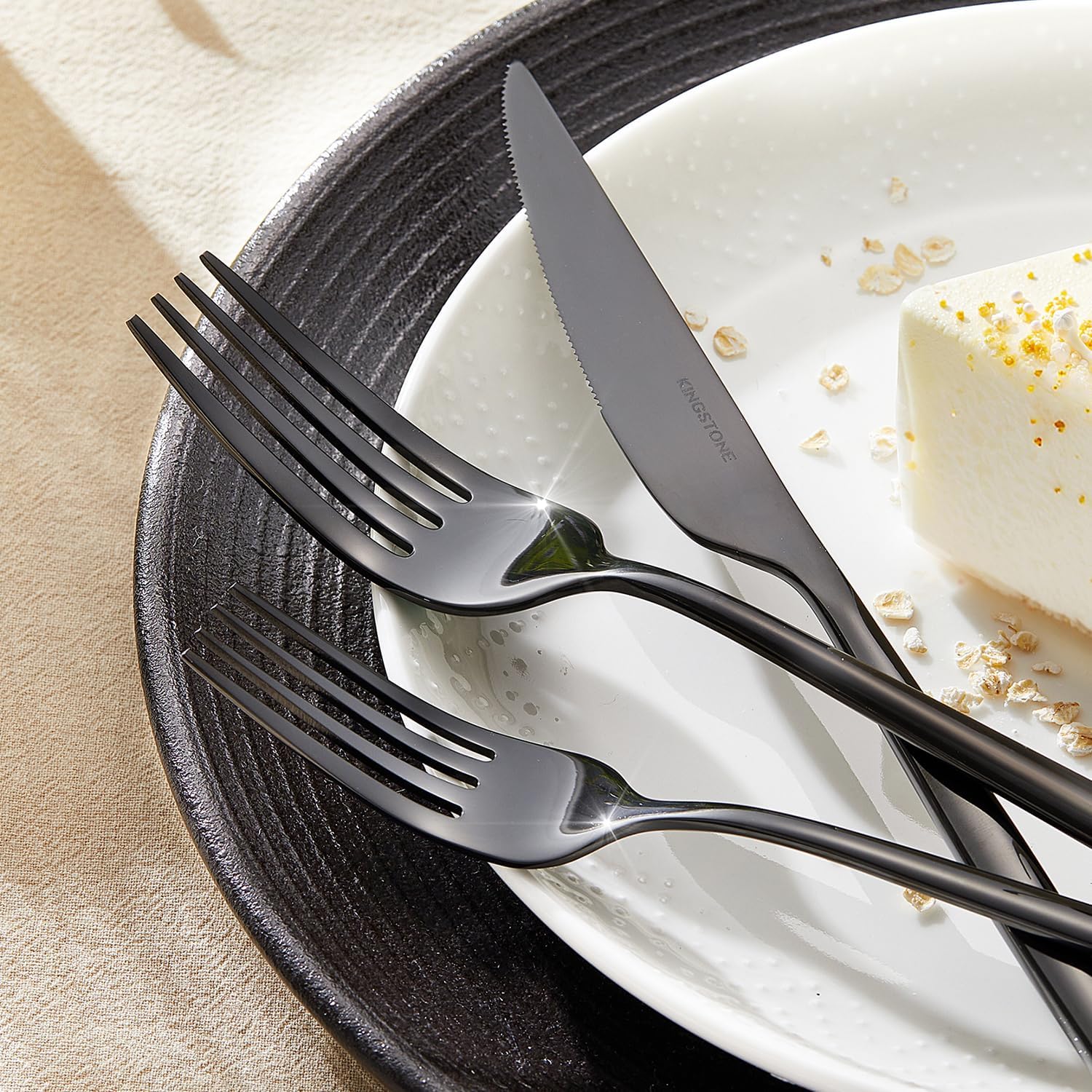 KINGSTONE Silverware Set, 20-Piece Flatware Set Cutlery Set Premium 18/10 Stainless Steel, Tableware Include Forks Knives Spoons for Home Kitchen Restaurant Wedding, Dishwasher Safe,Black