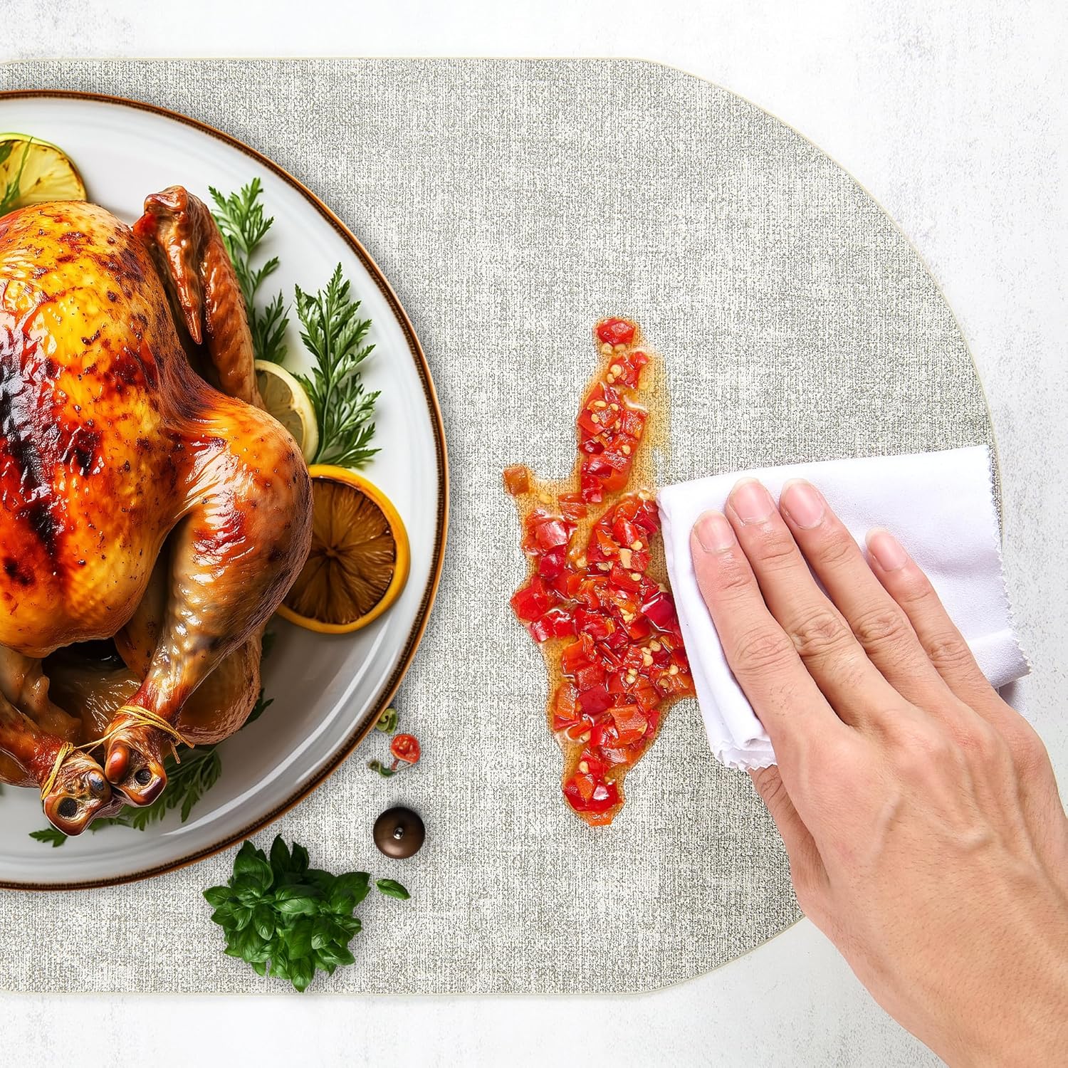 - 【Reversible & Non-slip Design】Say goodbye to slipping placemats. The subtly textured, double-sided surface resists wear, stays in place, and helps reduce noise for a quieter, more sophisticated dining experience. The tasteful colors and elegant oval shape add charm to any table—perfect for modern, farmhouse decor or light luxury interiors.