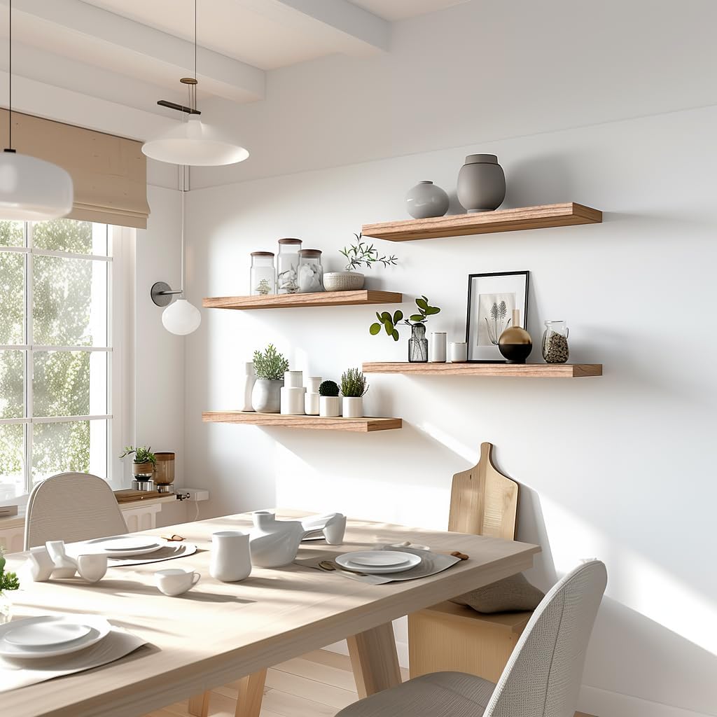 Light Wood Floating Shelves for Wall Rustic Wall Shelves for Bedroom Set of 6