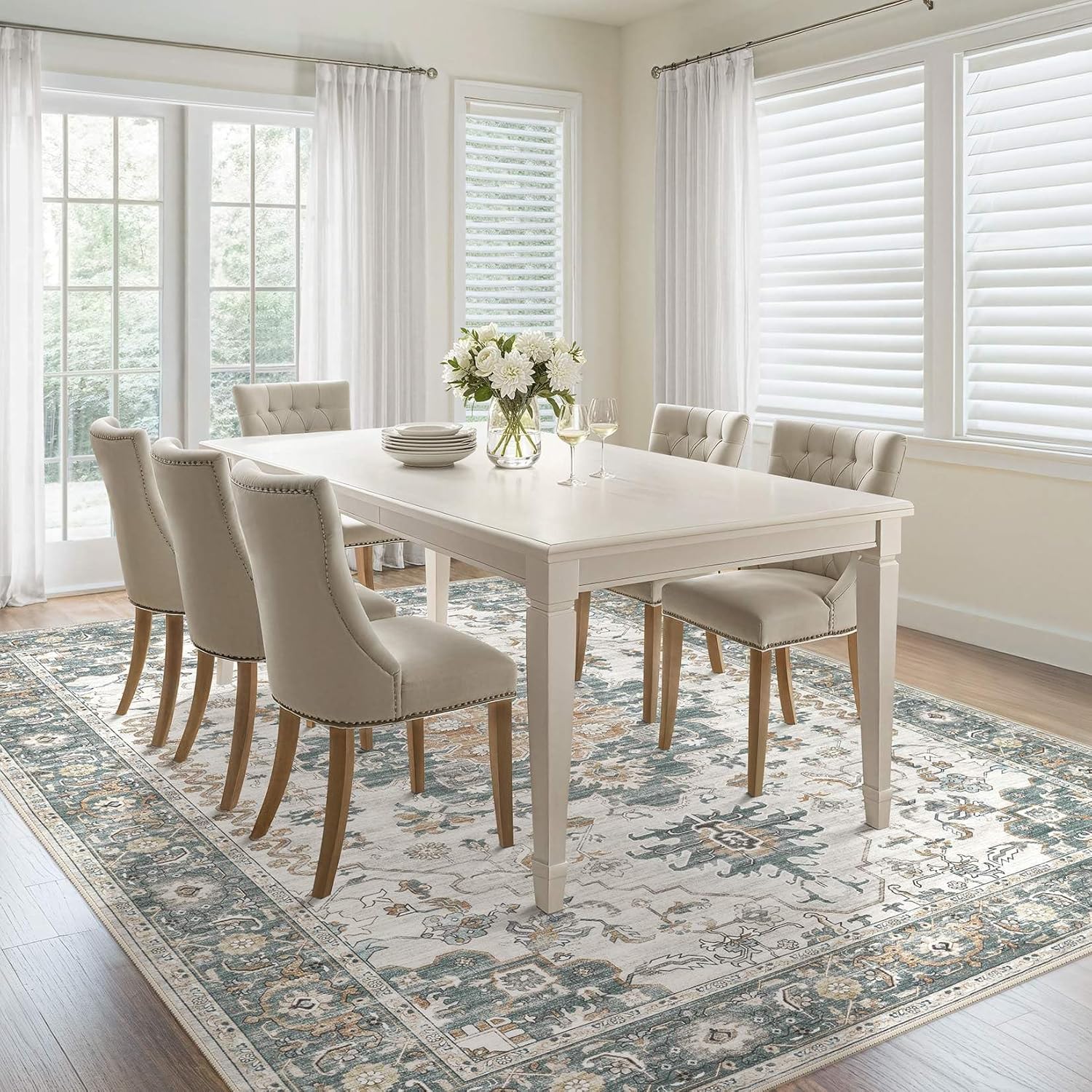 Washable Area Rugs for Living Room - 7x9 Neutral Vintage Distressed Floral Farmhouse Boho Large Soft Floor Rug Indoor Non Slip Carpet for Living Room Bedroom Dining Room Office - Green/Grey
