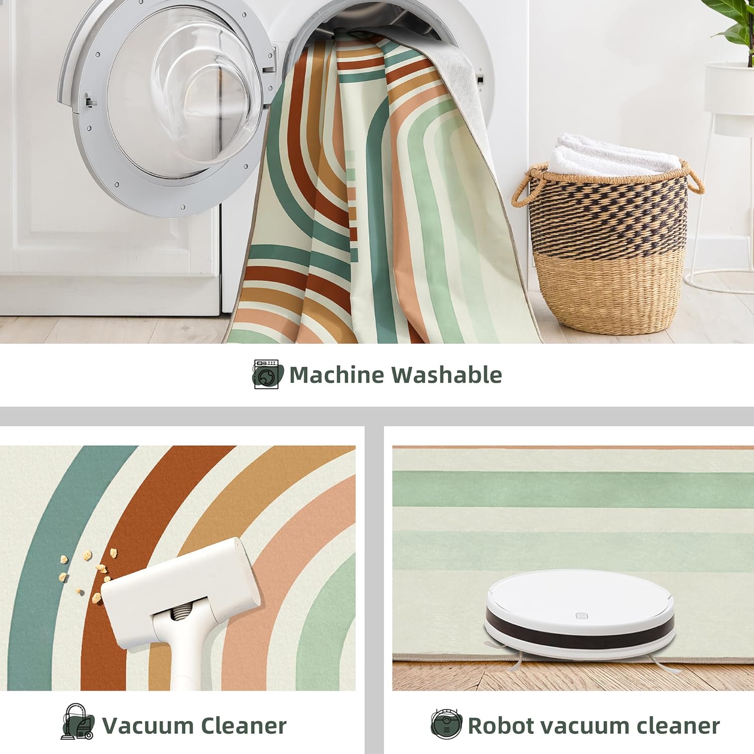 Indoor Outdoor Area Rug, Mid Century Modern Multicolored Outdoor Patio Rug,Washable Abstract Art Rainbow Rugs Non-Slip Carpet for Camping, Bedroom, Deck(8x10)