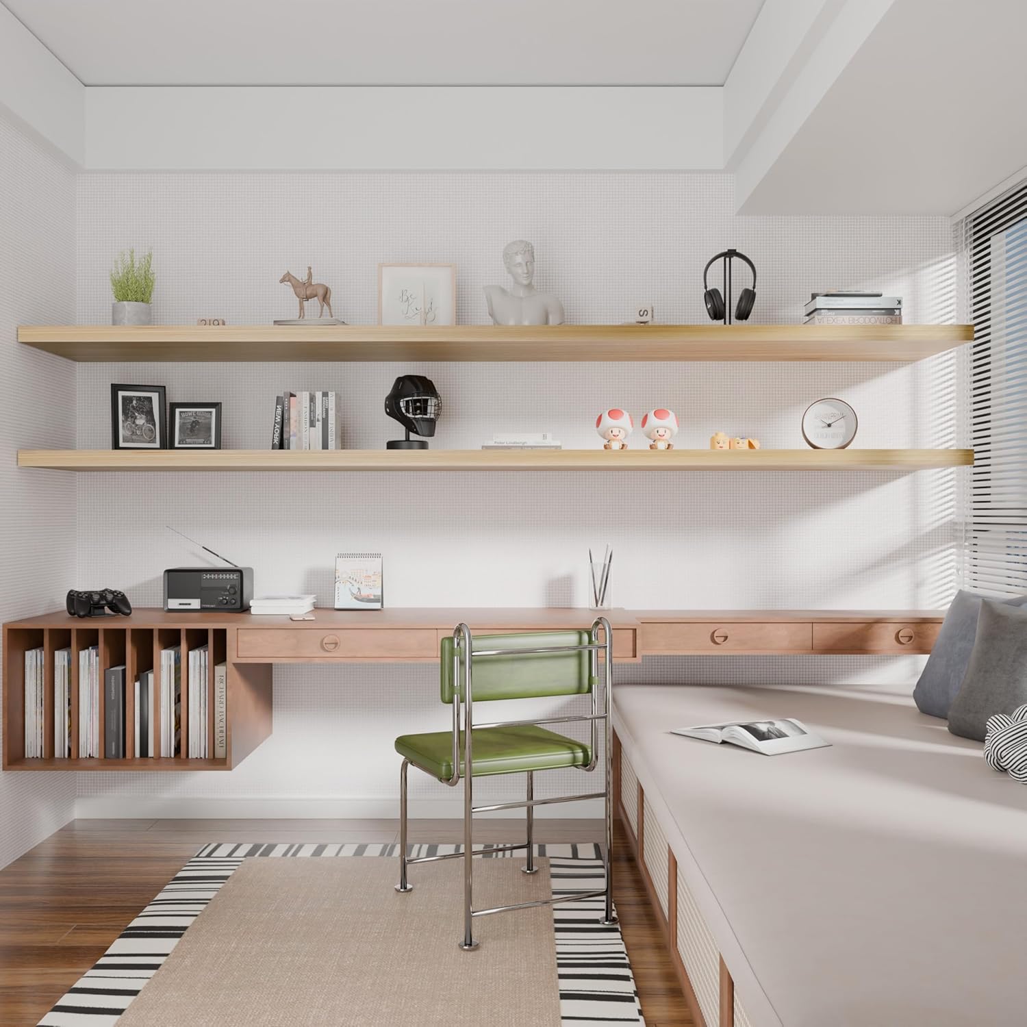 - 【𝑽𝒆𝒓𝒔𝒂𝒕𝒊𝒍𝒆 𝑼𝒔𝒆】With an even coating on all surfaces, our floating shelves are versatile for use in bathrooms, kitchens, or bedrooms. The generous 7.9" width accommodates a variety of items, from bathroom essentials to books and decorative pieces.
