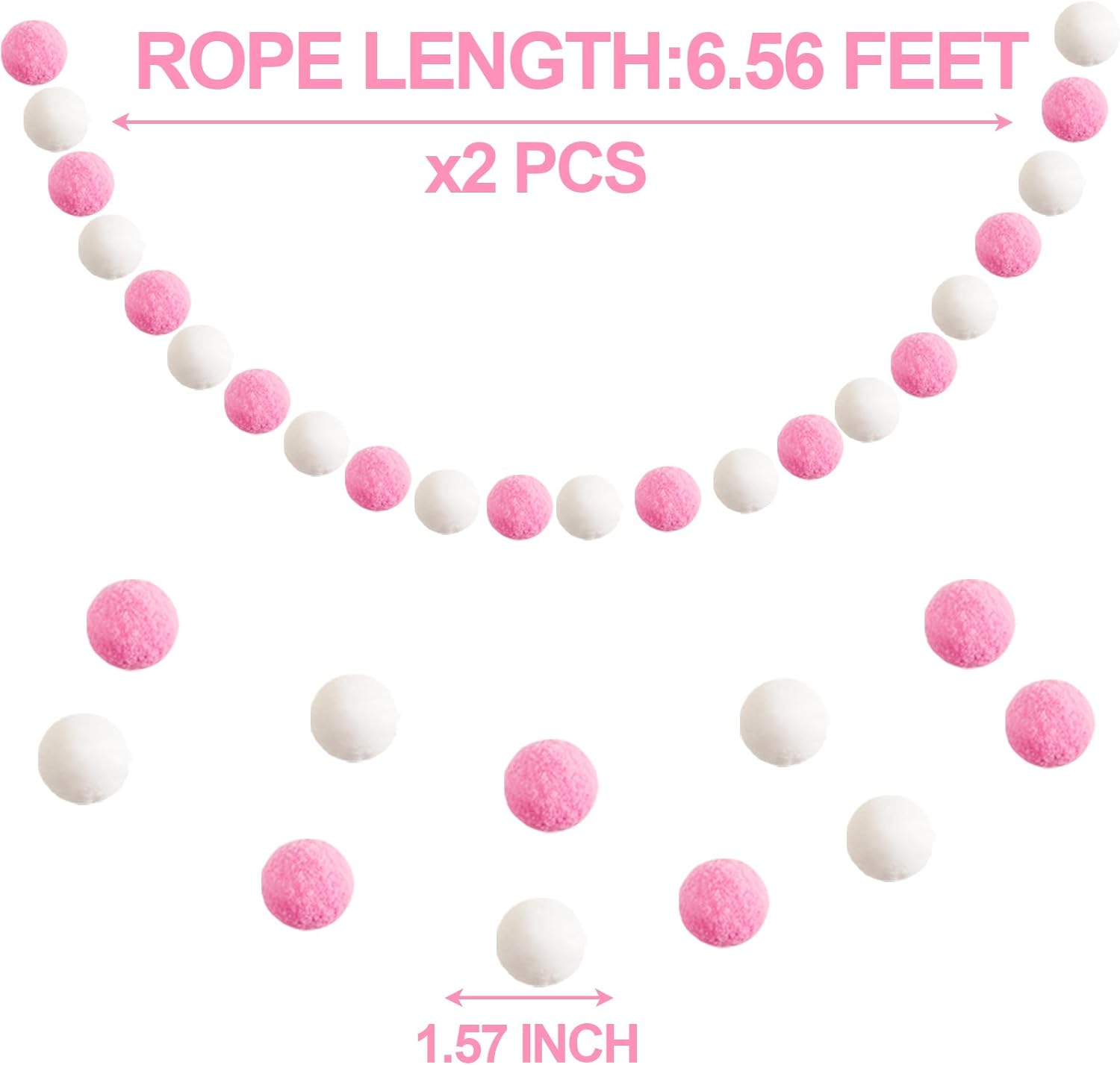 XmasExp Pom Pom Garland Decorations - Large Pink Felt Ball Garland for Baby Shower, Gender Reveal, Mantle,Tree Ornaments, Kids Room and Party Hanging Decor,13 Ft. (Pink, 1.57")