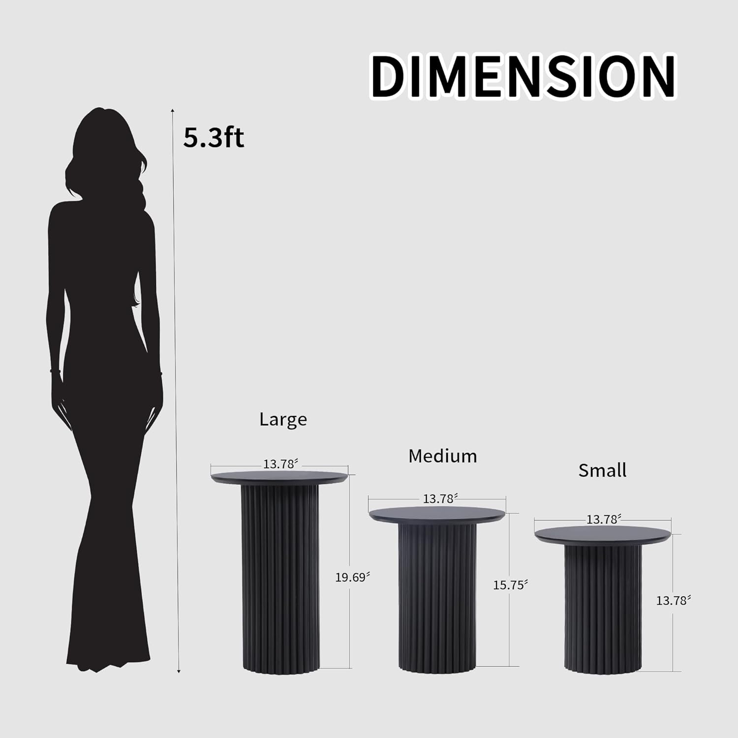 Round Nesting Coffee Table Set of 3,Mid Century Modern Fluted Coffee and End Table Set,Small Circle Wooden Side Table Drink Table for Living Room (Black)
