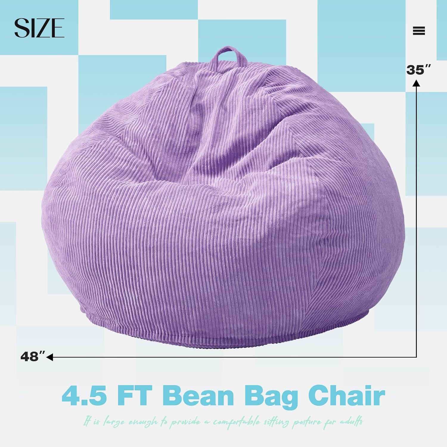 Hobestluk 4.5FT Bean Bag Chair Giant Bean Bag Chair with Filler Included Adult Bean Bag Chairs with Removable Cover for Bedroom Living Room - (Jumbo, Purple)