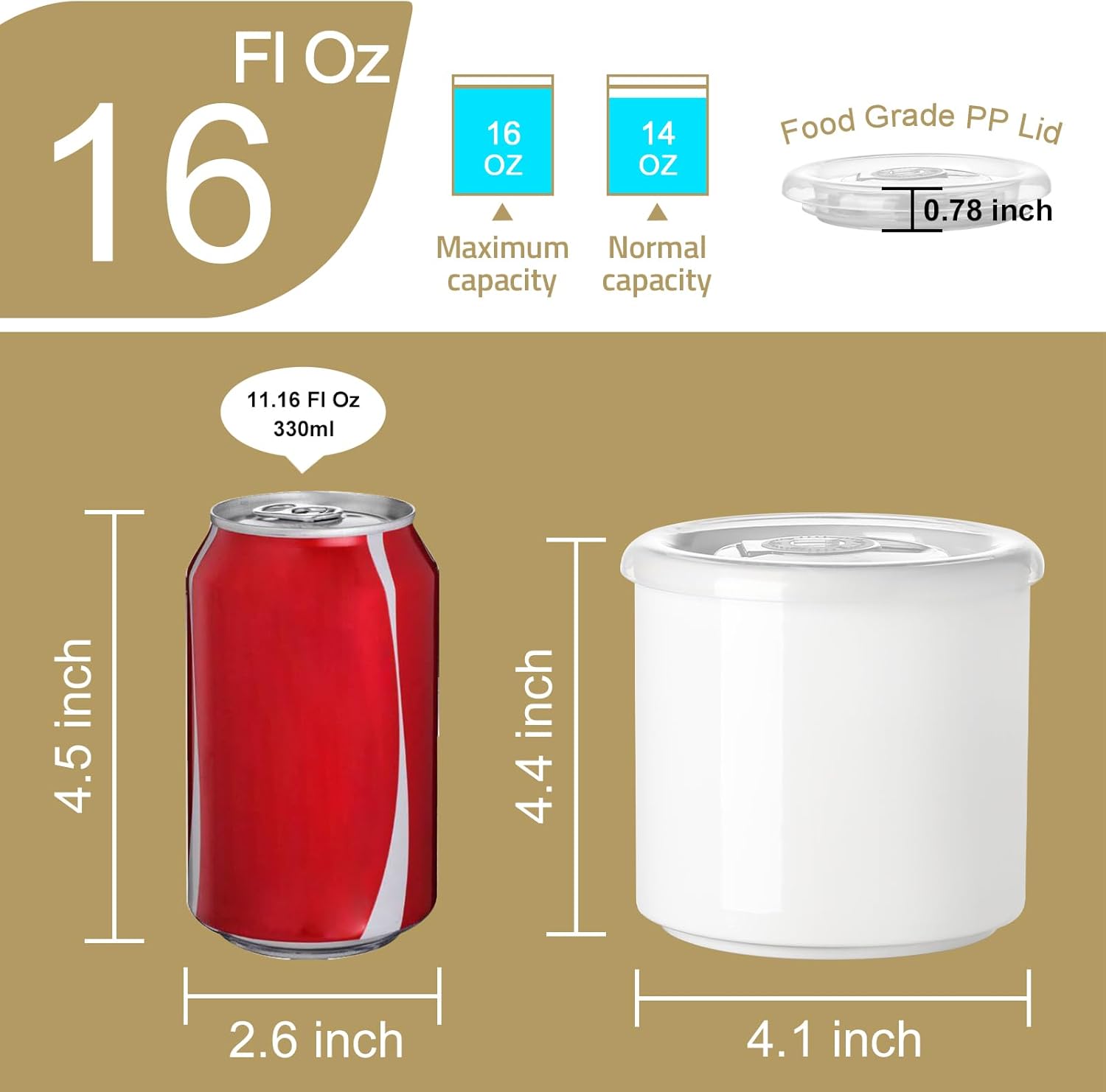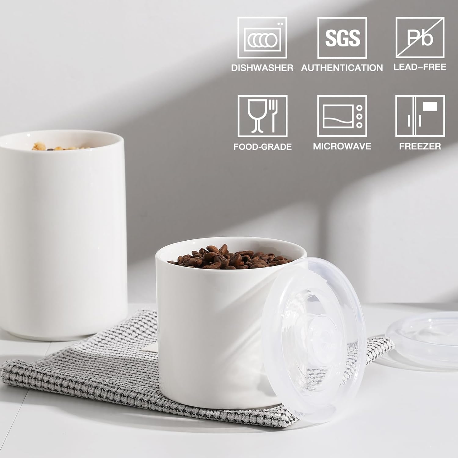 Sweejar Ceramic Food Storage Jar, Salt Container with Airtight Plastic Lid & Date Tracker, 16 Oz Kitchen Canisters for Flour, Rice, Sugar, Coffee, Spices, Pantry Organization (White)