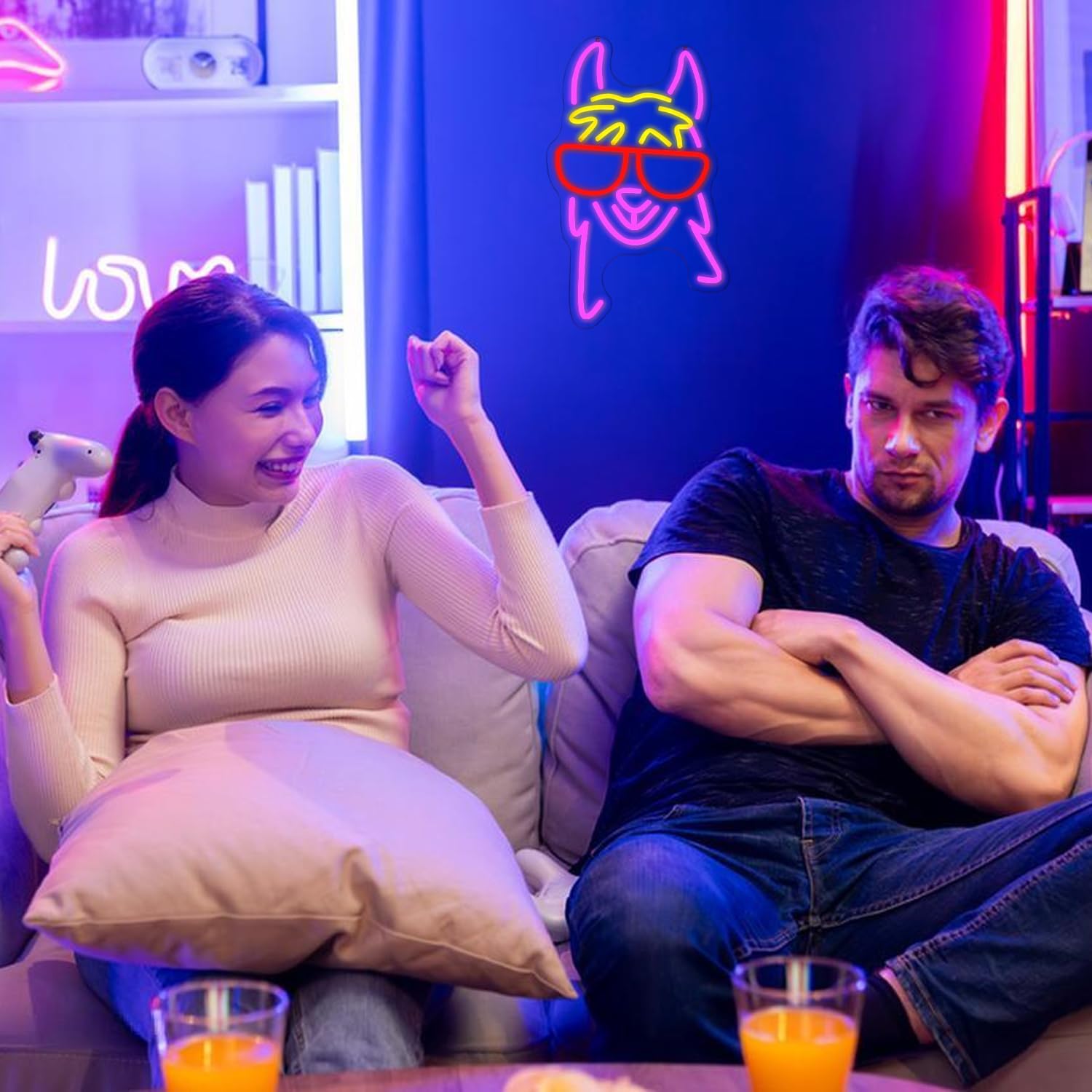 - Unique design:Llama with red glasses neon signs, brightly colorful and eye-catching. Funny animal neon lights display vitality and enthusiasm, can be used for rock music, concerts, and bedroom wall decoration.