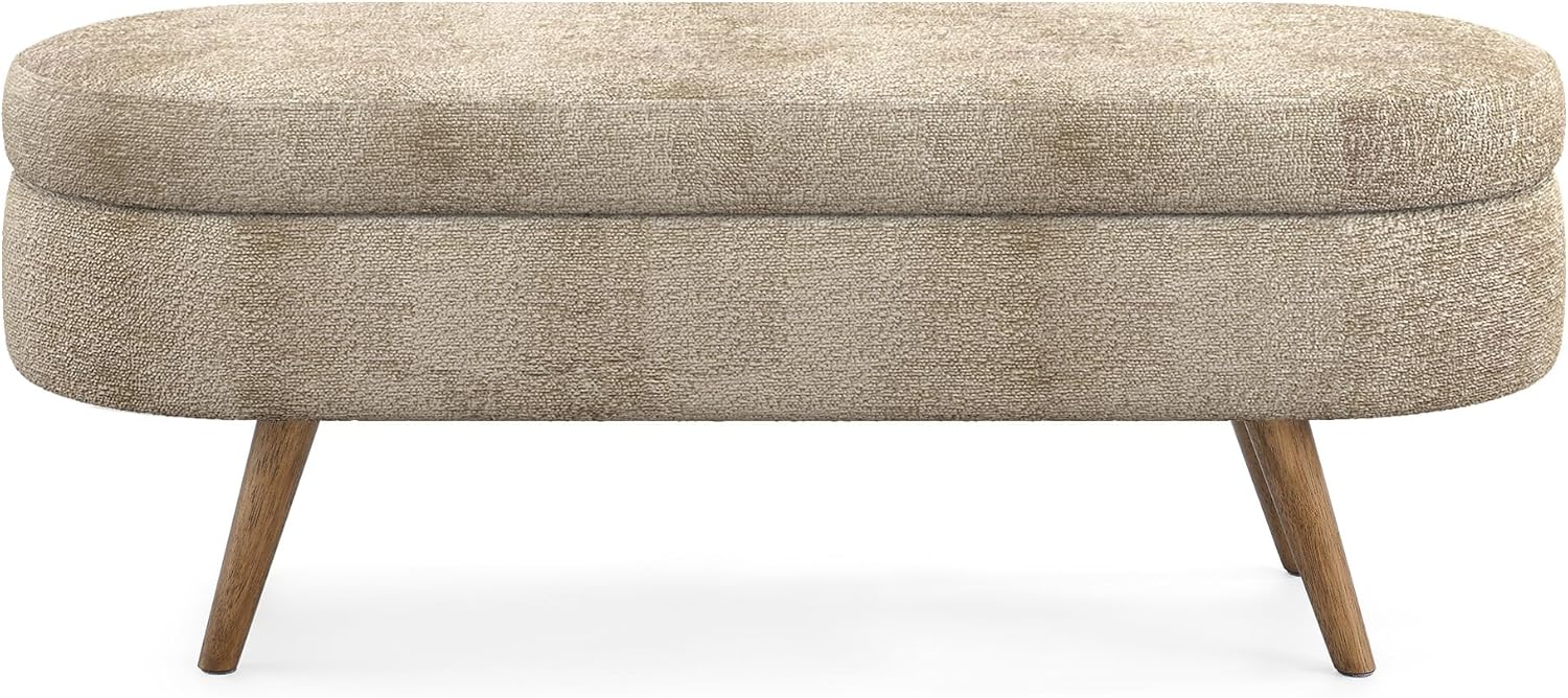 Oval Storage Bench 43.5" Linen Fabric Upholstered Entryway Bench with Solid Wood Legs Ottoman Bench Indoor Bench for Living Room/Bedroom/End of Bed/Entryway (Brown)
