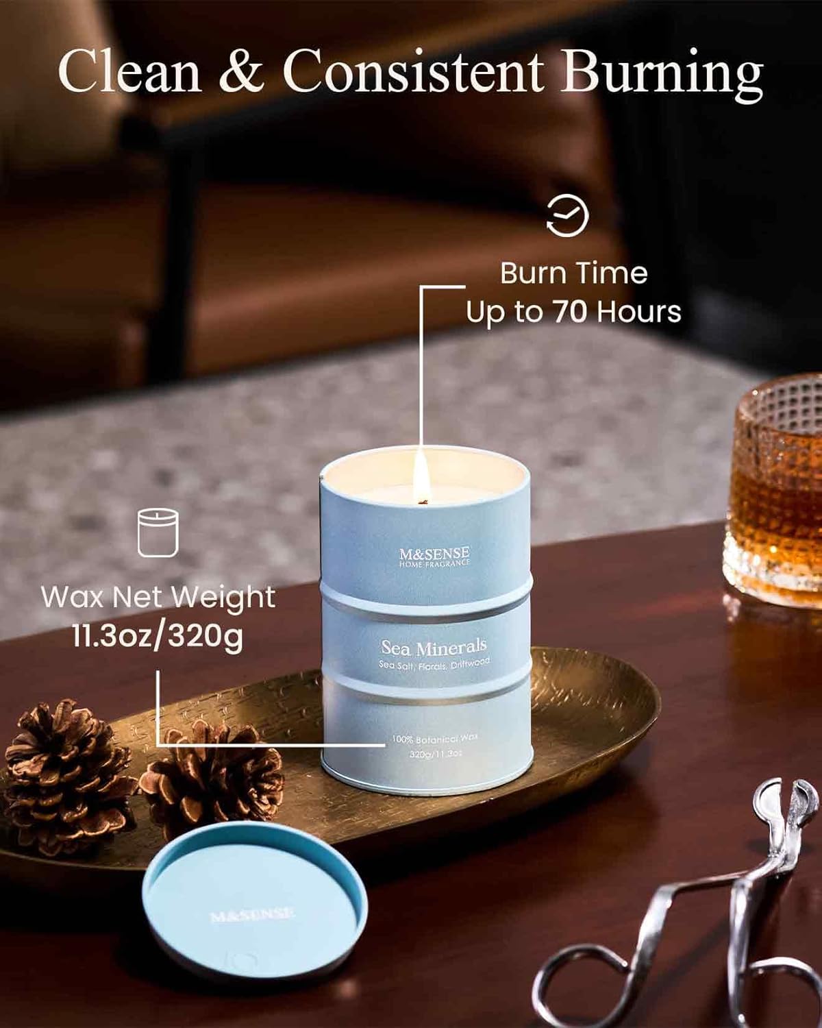 M&SENSE Sea Minerals Scented Candles Ocean, Aromatherapy Summer Candle for Stress Relief Meditation Relaxing, Housewarming Gifts for Women Men, 11.3oz 70 Hour Long Burning