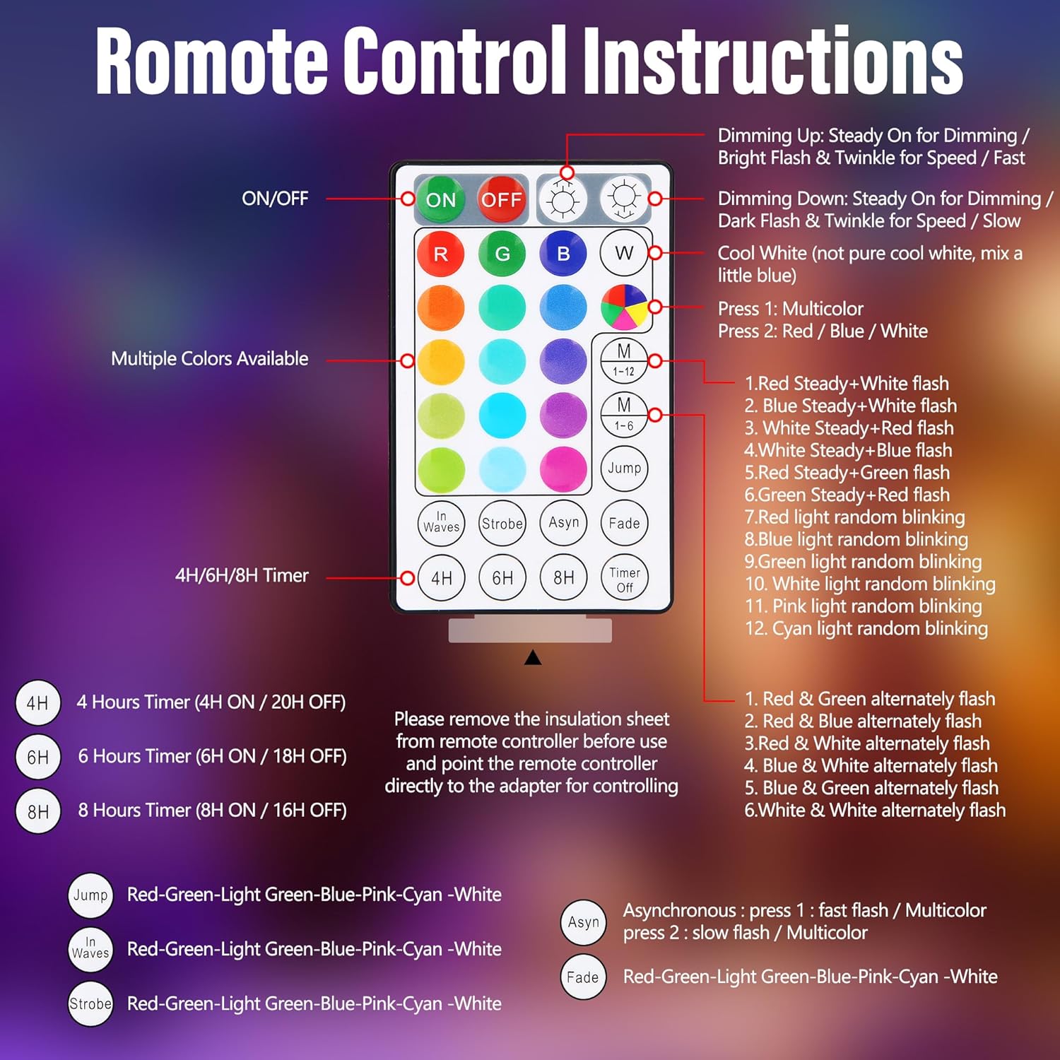 - Special Feature : Adjustable, Color Changing, Dimmable, Remote Controlled, Timer