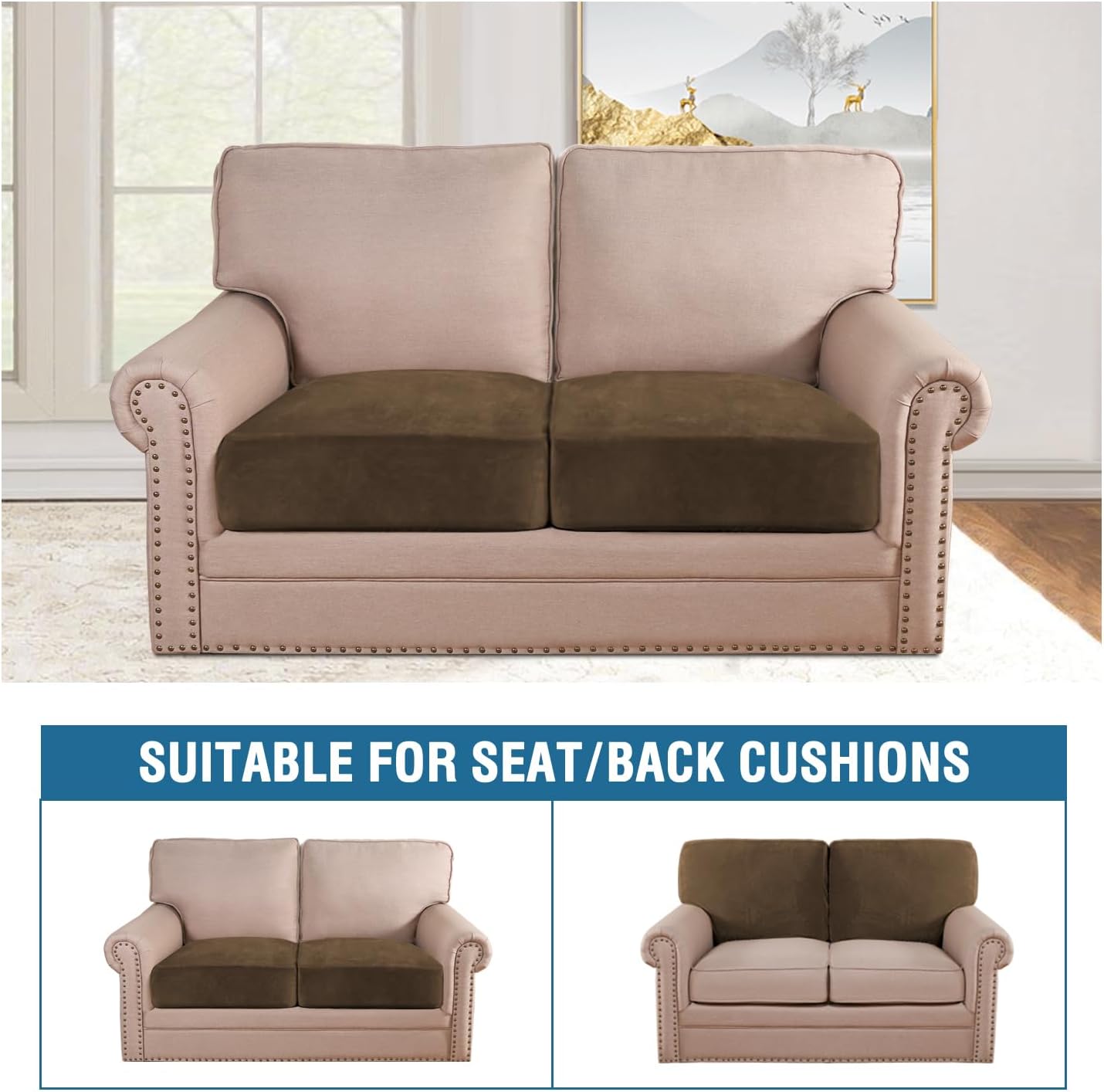 H.VERSAILTEX Velvet Stretch Couch Cushion Cover Plush Cushion Slipcover for Chair Loveseat Sofa Cushion Furniture Protector Seat Cushion Sofa Cover (2 Piece Large Sofa Cushion Covers, Bronze Brown)