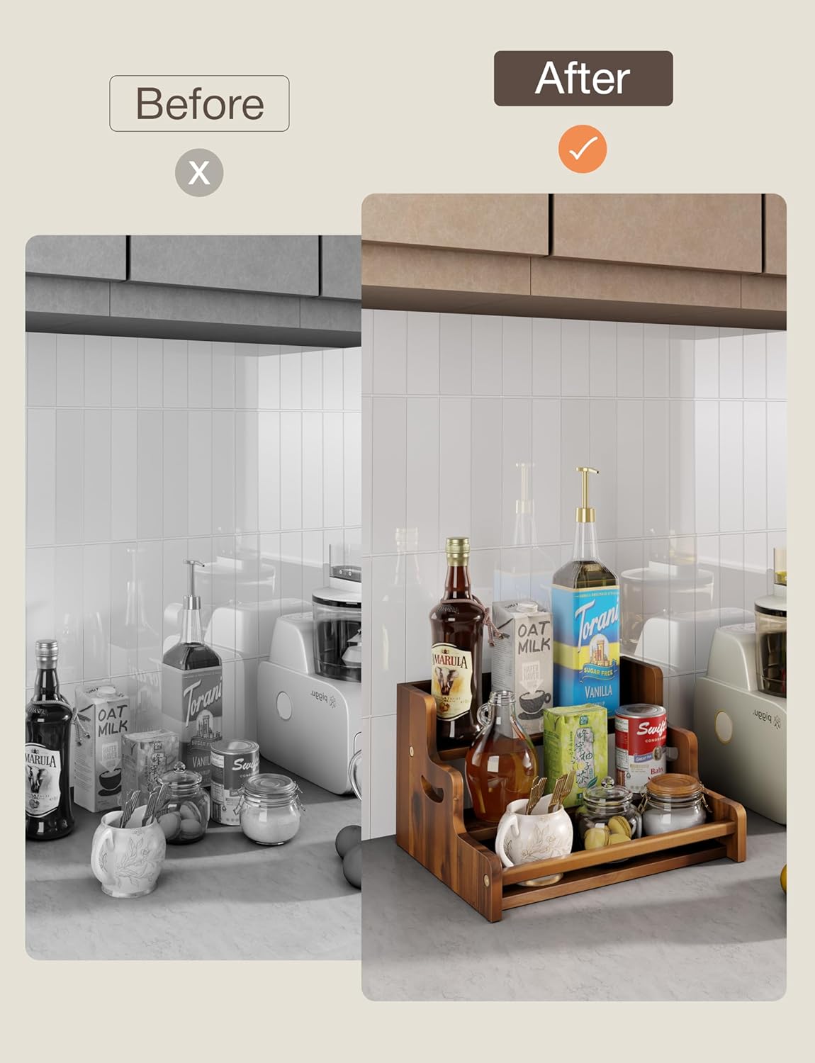 - Stable & Safe with Non-Skid Pads: Equipped with non-skid pads to protect surfaces and keep your bar accessories stable without slipping. The sturdy frame is securely fixed with screws, giving you peace of mind when displaying liquor bottles or coffee syrups