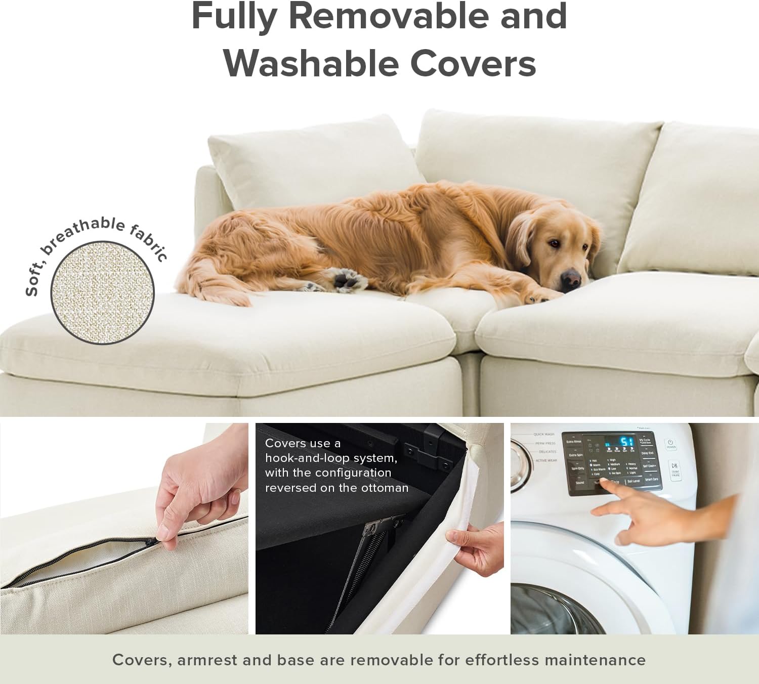 - Fully Removable & Washable Covers for Easy Care: Designed to keep up with real life, all covers, including the armrests and base, are fully removable and machine washable. Whether you’ve got kids, pets, or just the occasional spill, this sofa is easy to keep fresh and clean