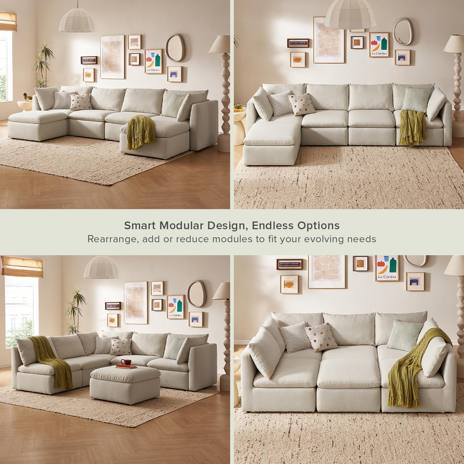 mopio Oversized Modular Sectional Sofa with Fully Removable Covers and Storage, Convertible U, L-Shaped and Sleeper Sectional, Modern Couches with Ottoman Chaise (Oat Fabric, 6 Seats, U)