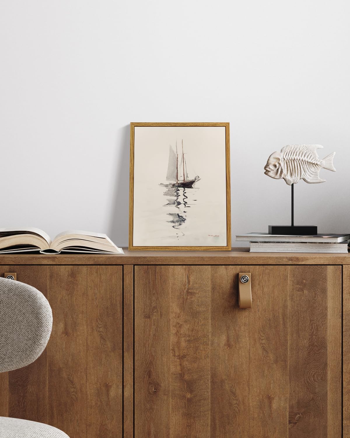 VIYYIEA Framed Wall Art for Living Room, Sailboat Canvas Prints, Classic Home Decor, Watercolor Painting Picture, Bathroom Wall Decor Gifts for Friends or Family -【Sailboat】-(10L x 8W)