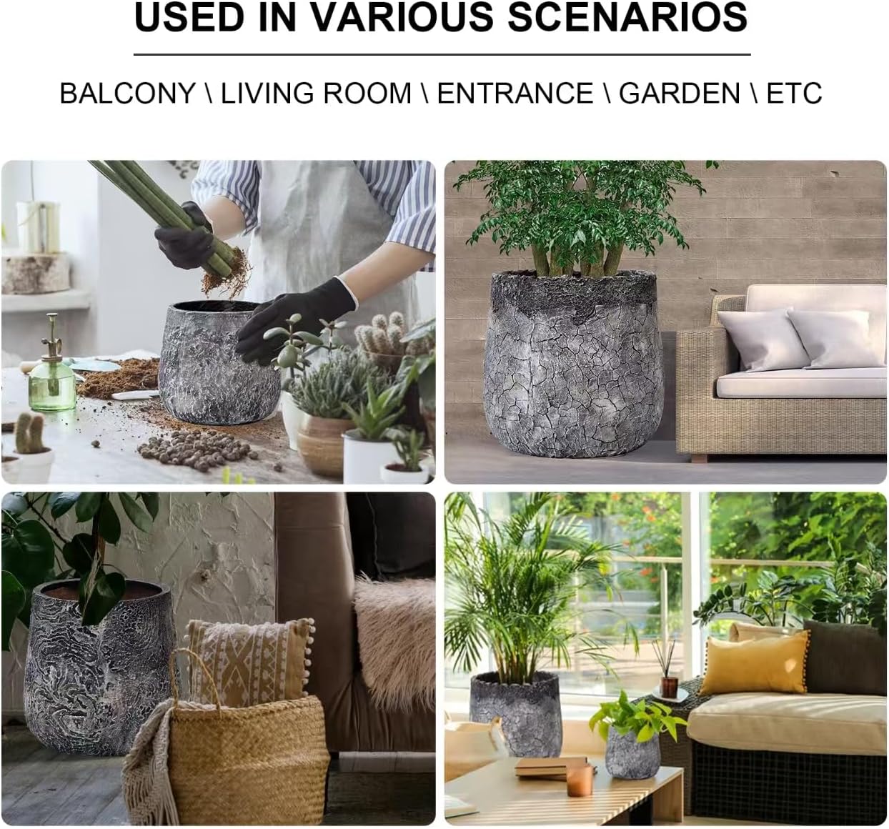 - Set of 3 Sizes: Includes three planters in small (9"x9"x8"), medium (13"x13"x12"), and large (18"x18"x16") sizes, allowing for a layered or staggered display of plants.
