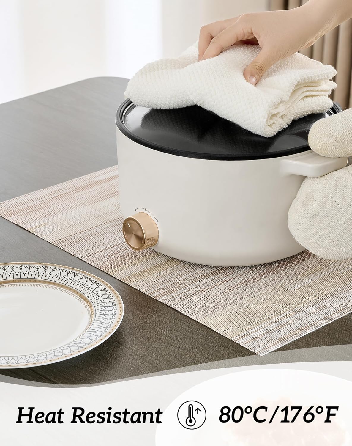 - Protects Your Table: Keep your table safe from scratches and spills with our heat-resistant placemats. They can withstand temperatures up to 176℉(80℃) and help keep food warm. Add style to your dining setting while ensuring table protection