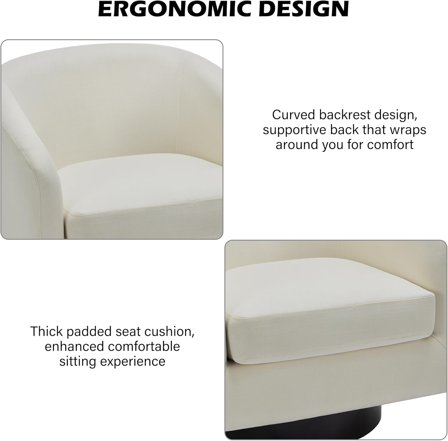 Swivel Barrel Accent Chair, Modern Round Linen Arm Chair for Living Room, Bedroom, Comfy Club Reading Chairs for Adults(Linen Fabric, Beige, Set of 2