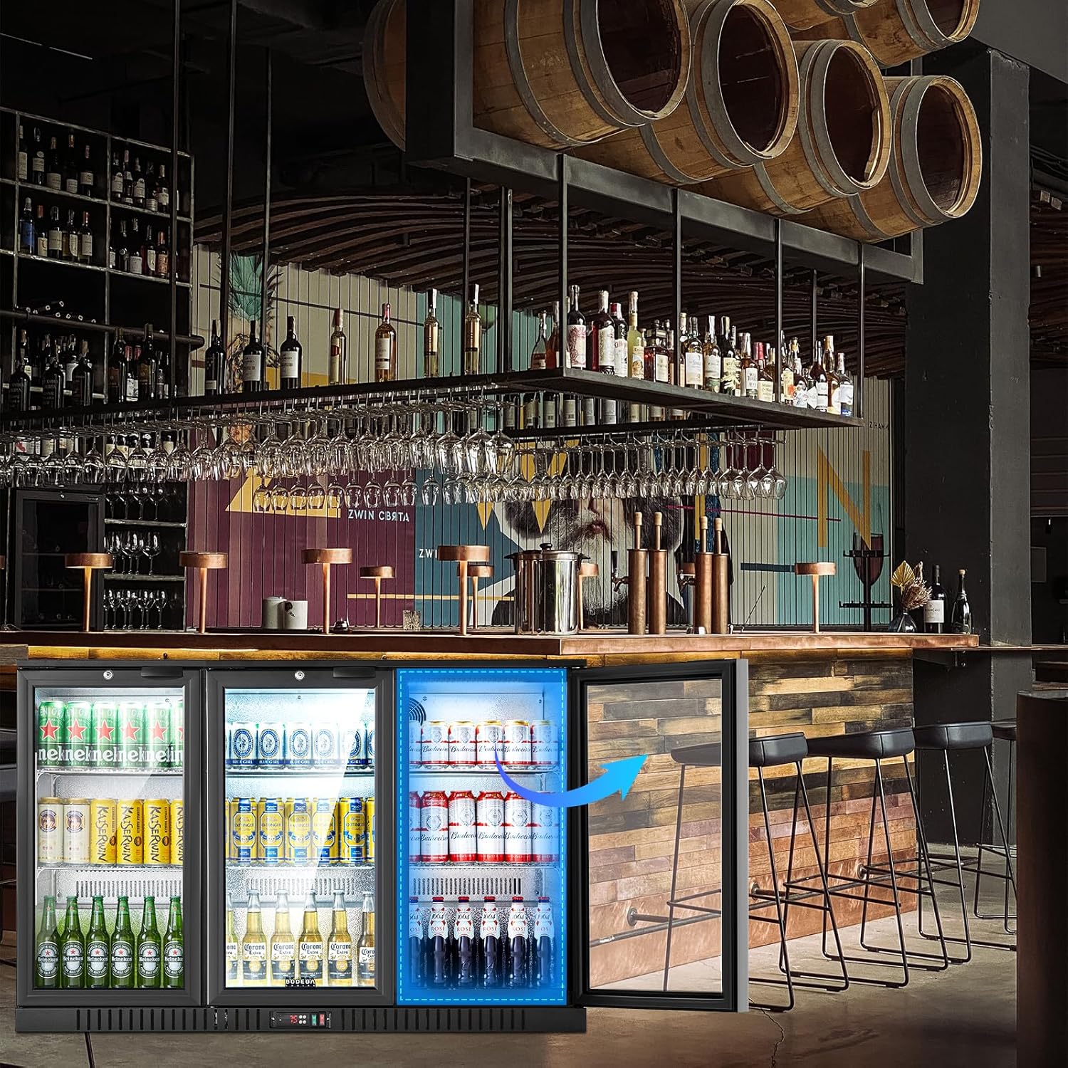 - [Automatic Defogging System] BODEGACOOLER 3 doors display Commercial bar fridge with a high definition double-layer Tempered glass door design, which provides better heat preservation and durability compared to traditional display bar fridge with a ordinary single-layer glass door. Also, this display beverage fridge with a built-in automatic defogging system that automatically removes fog from the glass every 6 hours, keeping the glass door of the display cabinet always clear!