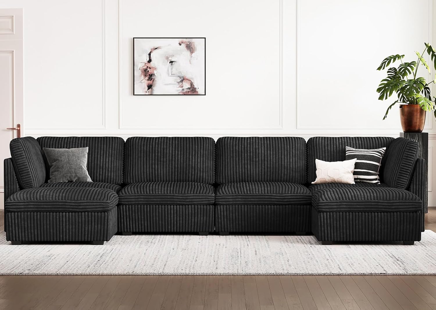 Belffin Modular Sectional Sofa with Storage Ottoman, Oversized Cloud Couch Sectional with Extra Deep Seat, Convertible Upholstered U Shaped Sectional Couches for Living Room, Plush Corduroy Black