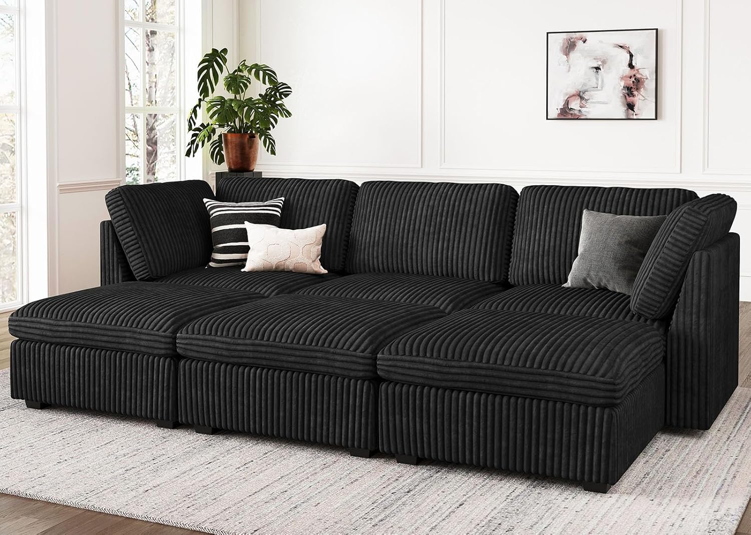 Belffin Modular Sectional Sofa with Sleeper Sofa, Oversized Cloud Couch with Extra Deep Seat, Upholstered 6 Seat Sectional Couches for Living Room, Plush Corduroy Black