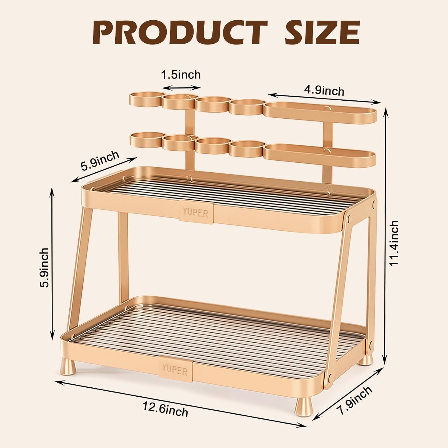 YUPER Bathroom Counter Organizer, 2-Tier Bathroom Organizer Countertop with Toothbrush Holder, Makeup Storage Shelf Vanity Tray Perfume Organizer, Bedroom Kicthen Counter Storage Sink Shelf Gold