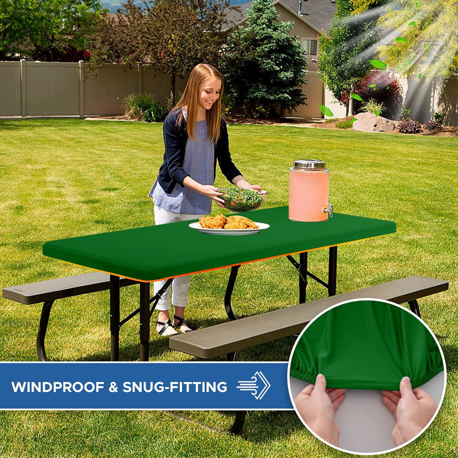 Fitted Tablecloth for 8 Foot Rectangle Tables-4 Pack Green Elastic Outdoor Picnic Table Cover-Spandex Stretch Folding Table Cloths 8ft for Camping Dining Room Patio Kitchen Banquet Party