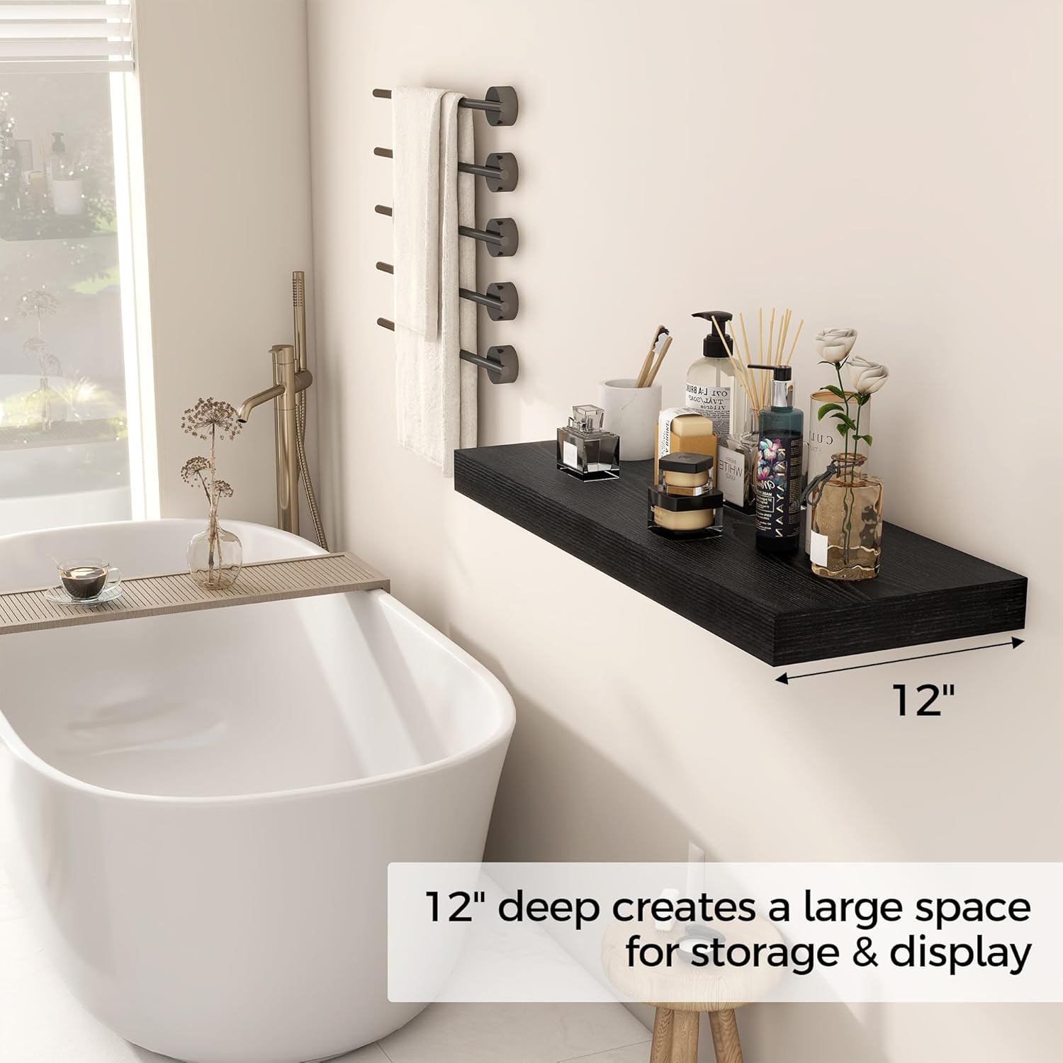 Fun Memories 30 Inch Floating Shelves Black, 12 Inch Deep Floating Shelf for Books, 30 x 12 x 2 Deep & Thicked Wall Shelves for Bathroom, Living Room, Kitchen, Set of 1