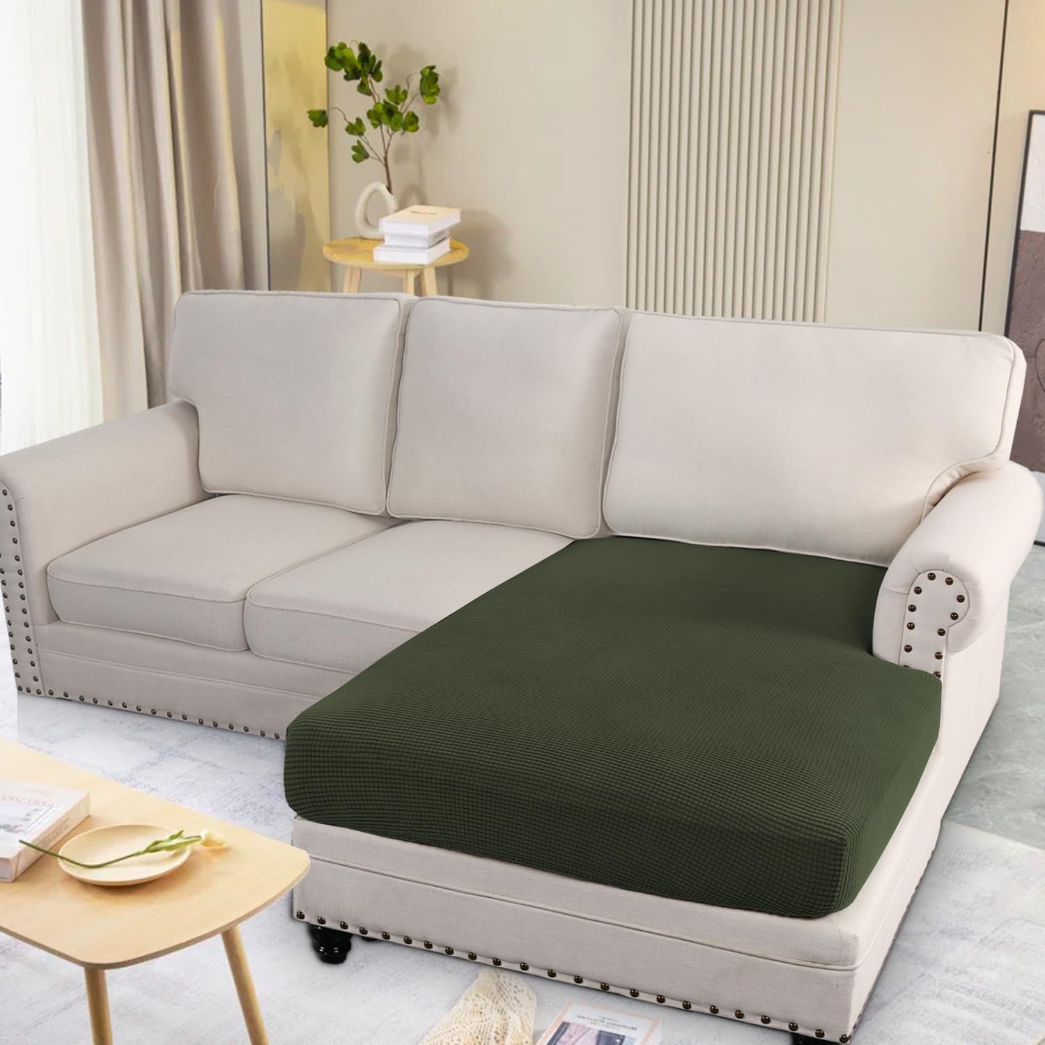 H.VERSAILTEX Super Stretch Individual Chaise Cover Sectional Couch Covers for L Shaped Sofa Both Left/Right Featuring Thick Jacquard Textured Twill Fabric (1 Piece Chaise Cover Large, Olive)