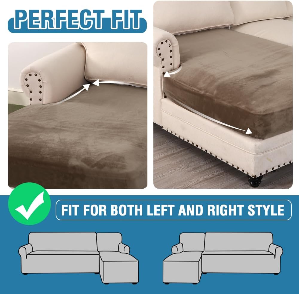 H.VERSAILTEX Velvet Stretch Individual Chaise Cover Sectional Couch Covers for L Shaped Sofa Both Left/Right Furniture Protector Seat Cushion Sofa Cover (1 Piece Chaise Cover, Mocha)