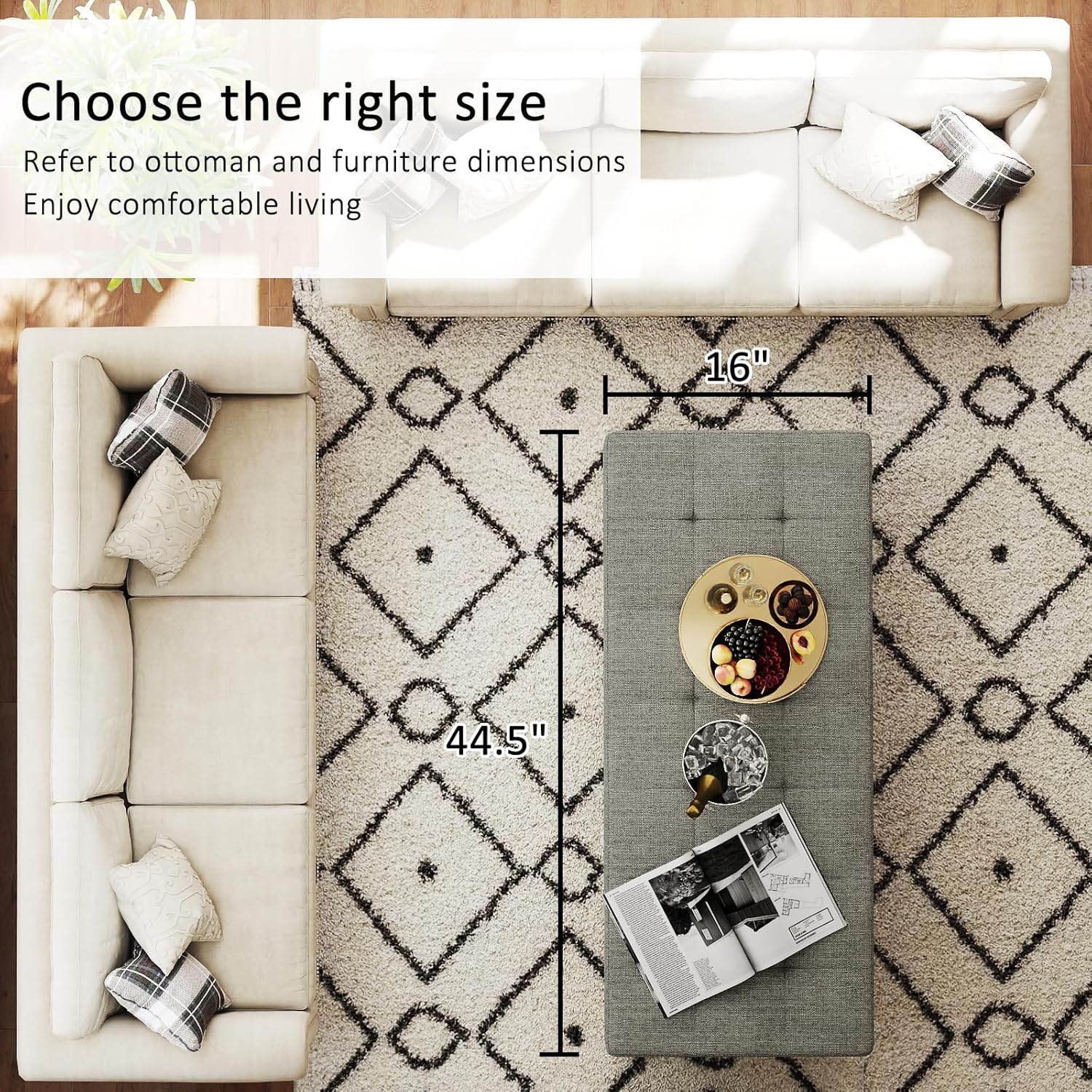 - Comfortable and Safe: The rectangular ottoman upholstery is made of high-end sponge with strong support and good resilience. The 3.2" thick high elastic sponge wraps the corners of the table to prevent bumping and protect your family's safety